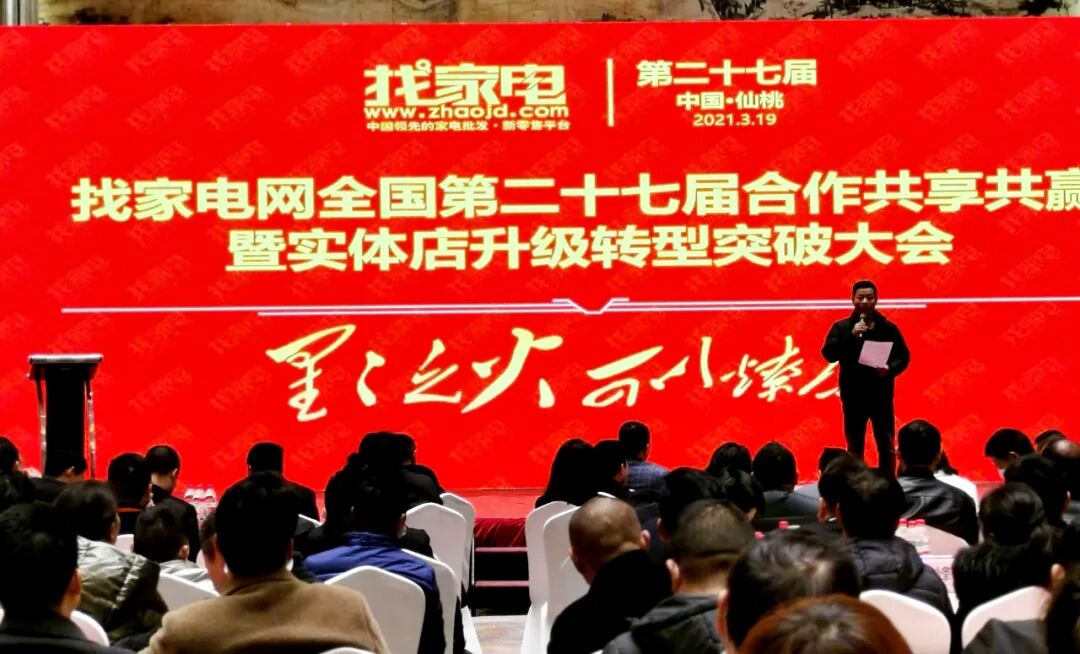2021年3月19日,中国.仙桃.仙苑国际大酒店,找家电网全国第27届合作共享共赢暨实体店升级转型突破大会胜利召开.合肥第一届启动会圆满取得成功,来自全国各地的家电从业者约300人参加了这次会议。