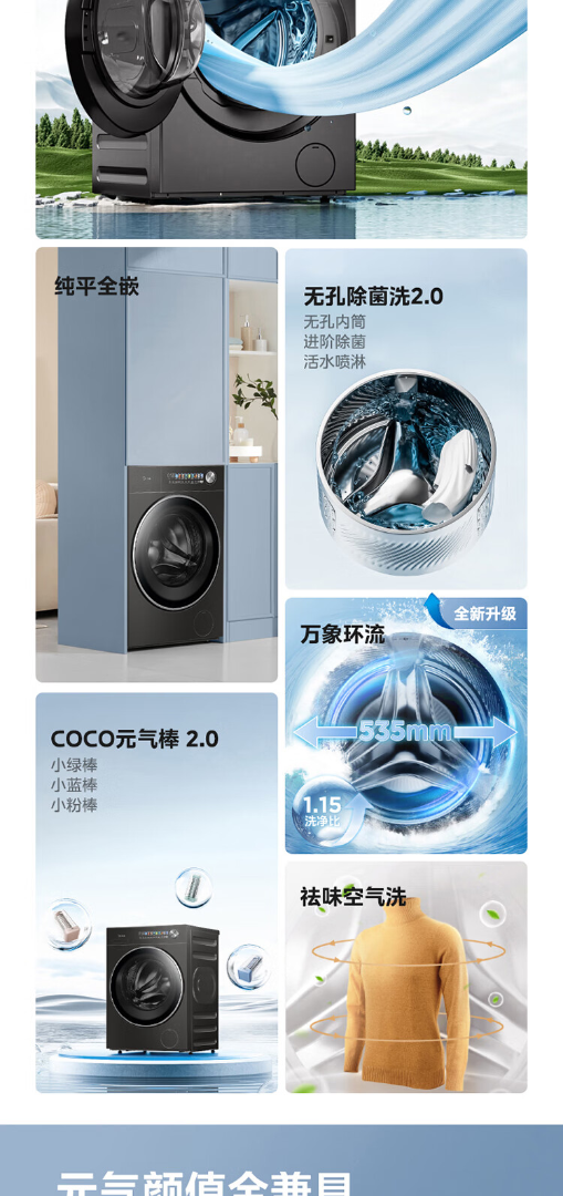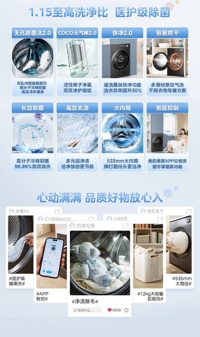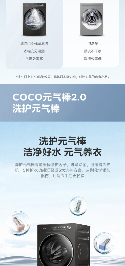 美的(Midea)元气2.0 滚筒洗衣机全自动 带烘干洗烘一体 12KG纯平大容量 智投 MD12S50T