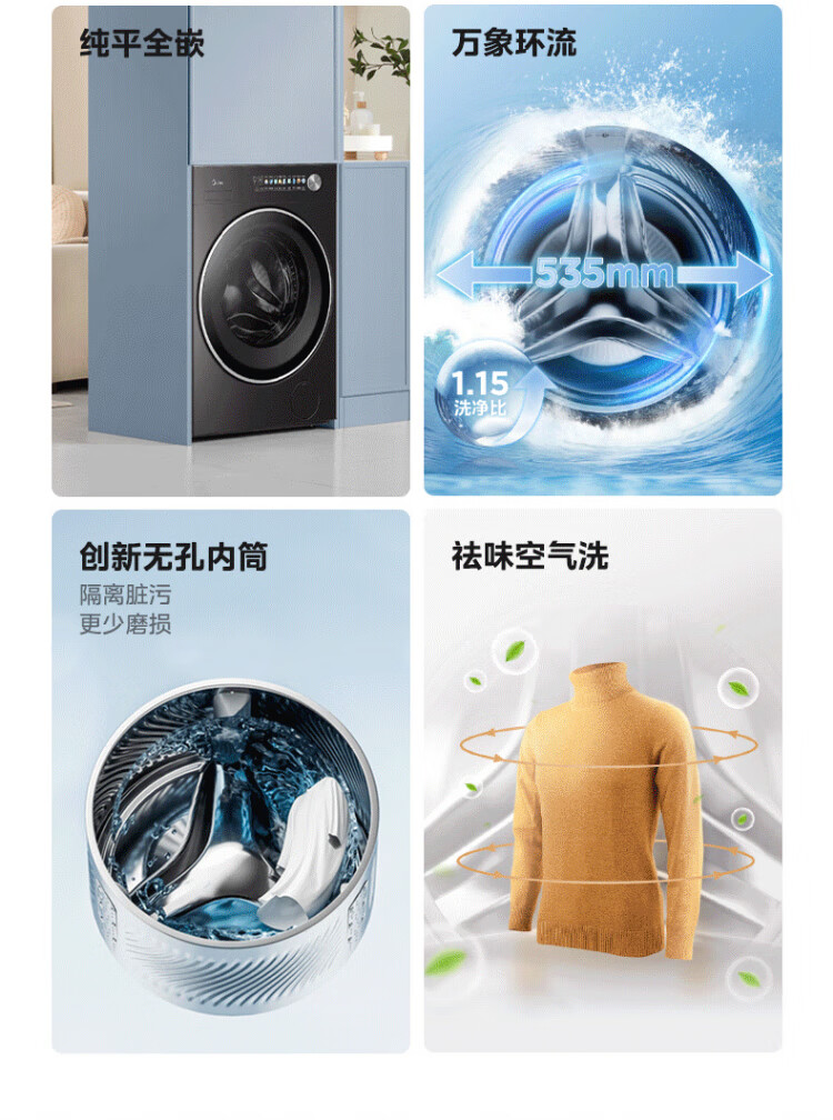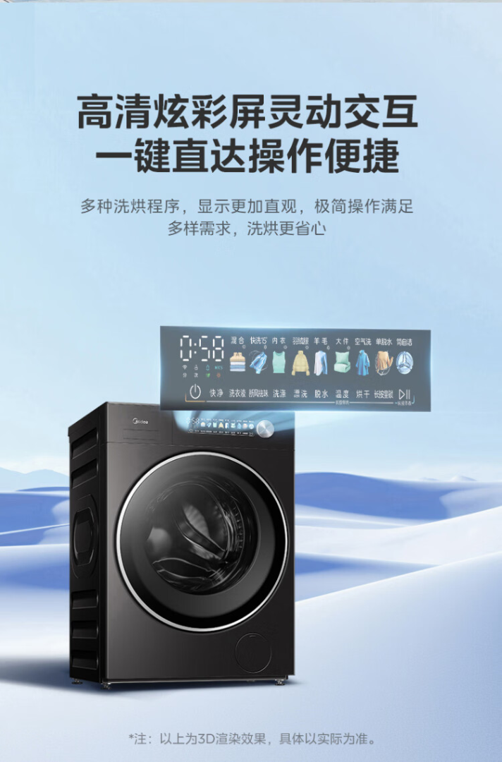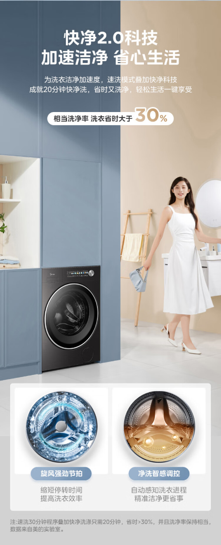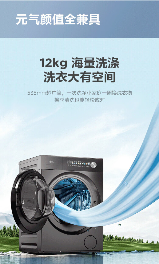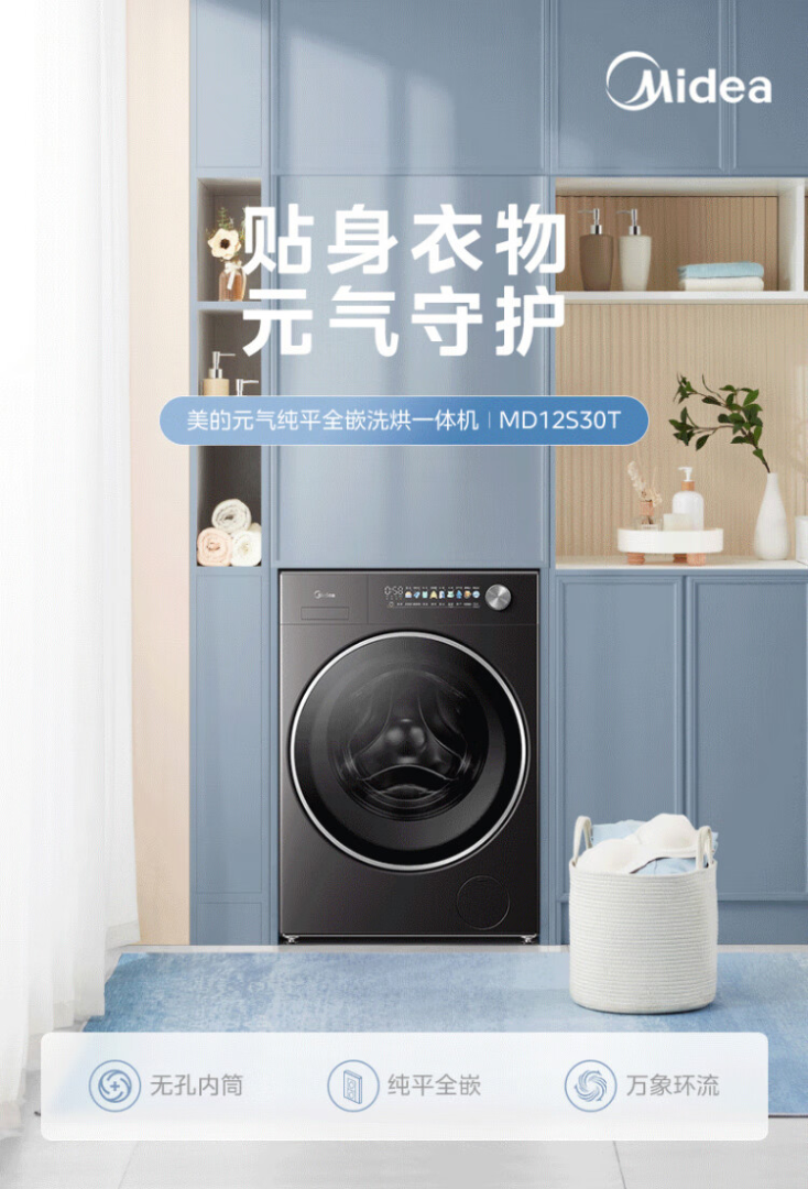 美的(Midea)元气2.0 滚筒洗衣机全自动 带烘干洗烘一体 12KG纯平大容量 智投 MD12S30T