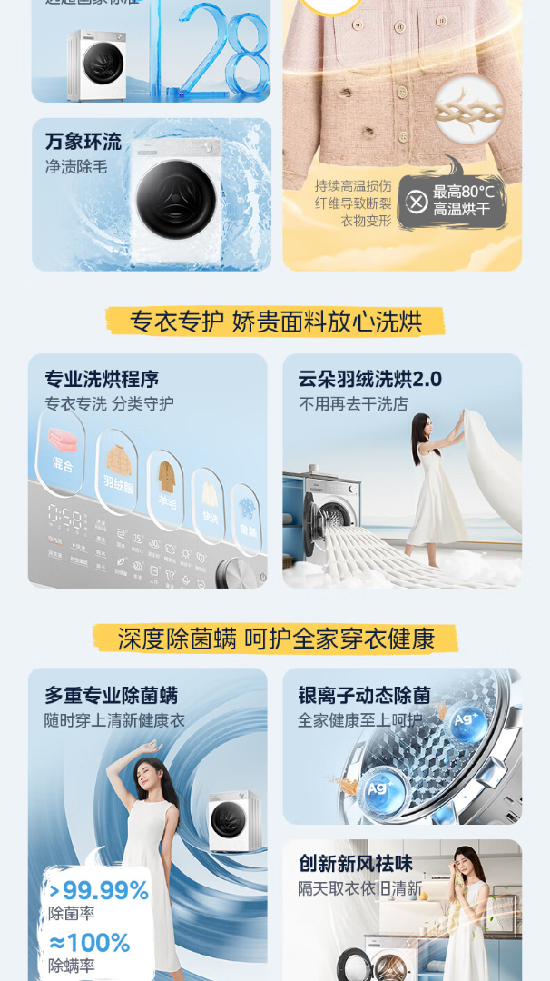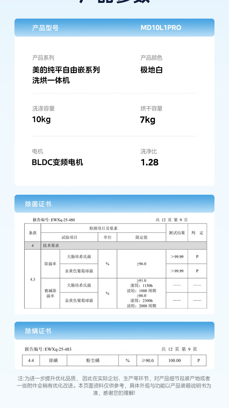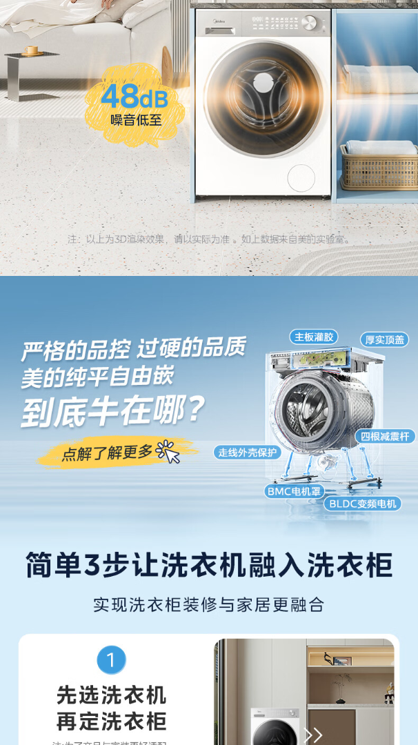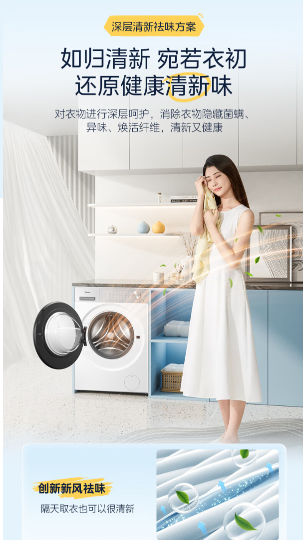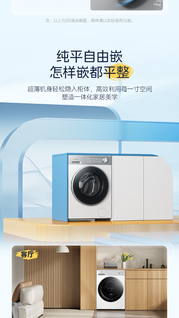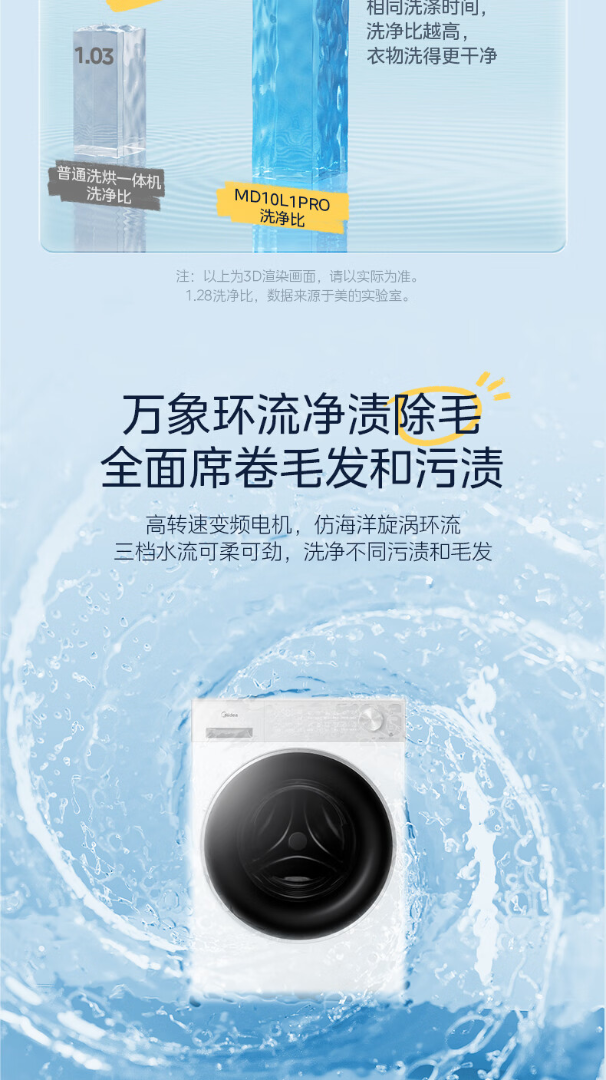 美的(Midea)滚筒洗衣机全自动10kg洗烘一体纯平自由嵌1.28高洗净比智能投放AI智能控温湿变频电机一级能效 MD10L1PRO 洗烘一体