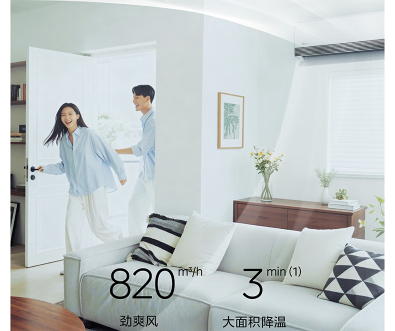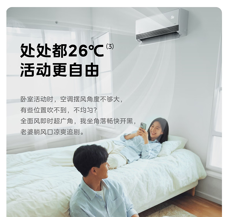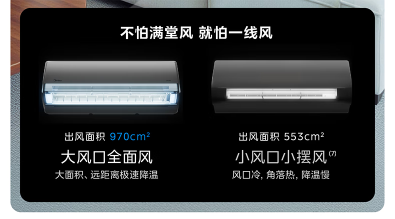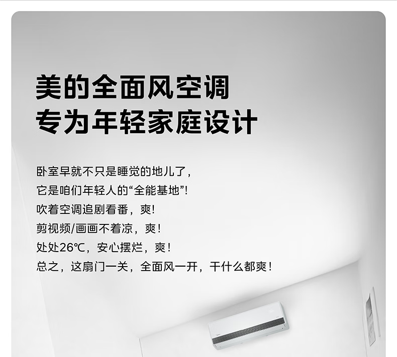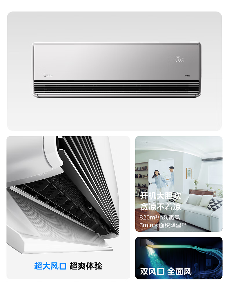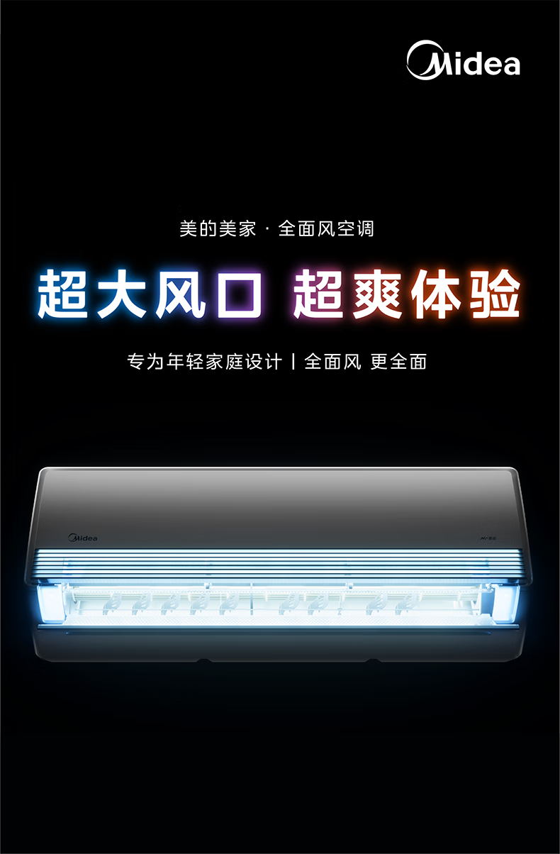 美的(Midea)美家全面风空调 空气超跑 全面风空调Q2 变频冷暖 新一级能效 大挂机卧室省电节能 全面风 1.5匹 一级能效超大风口