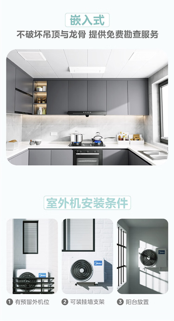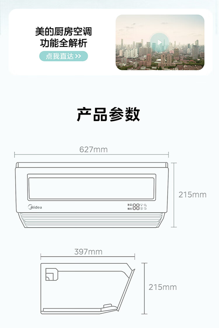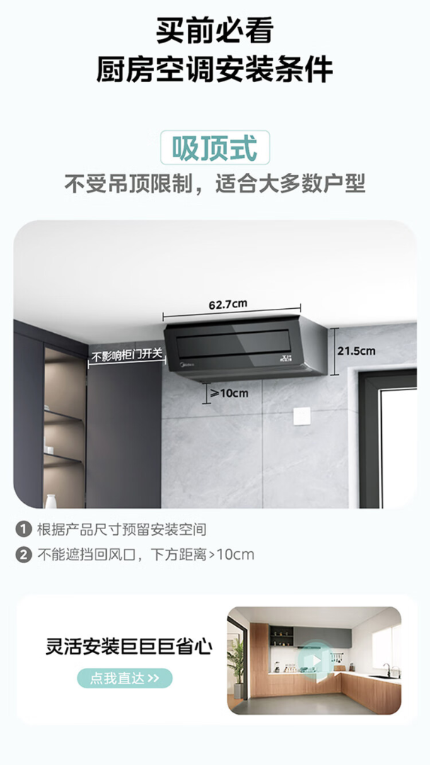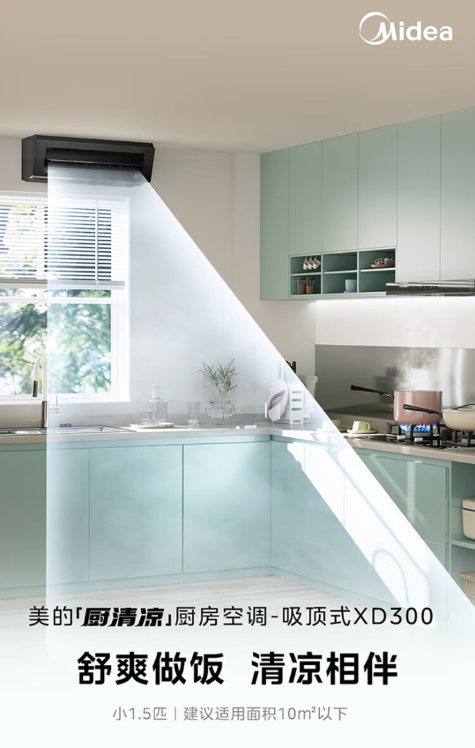 美的厨房空调专用机吸顶式小1.5匹单冷CKF-30XW/BN8Y-XD300