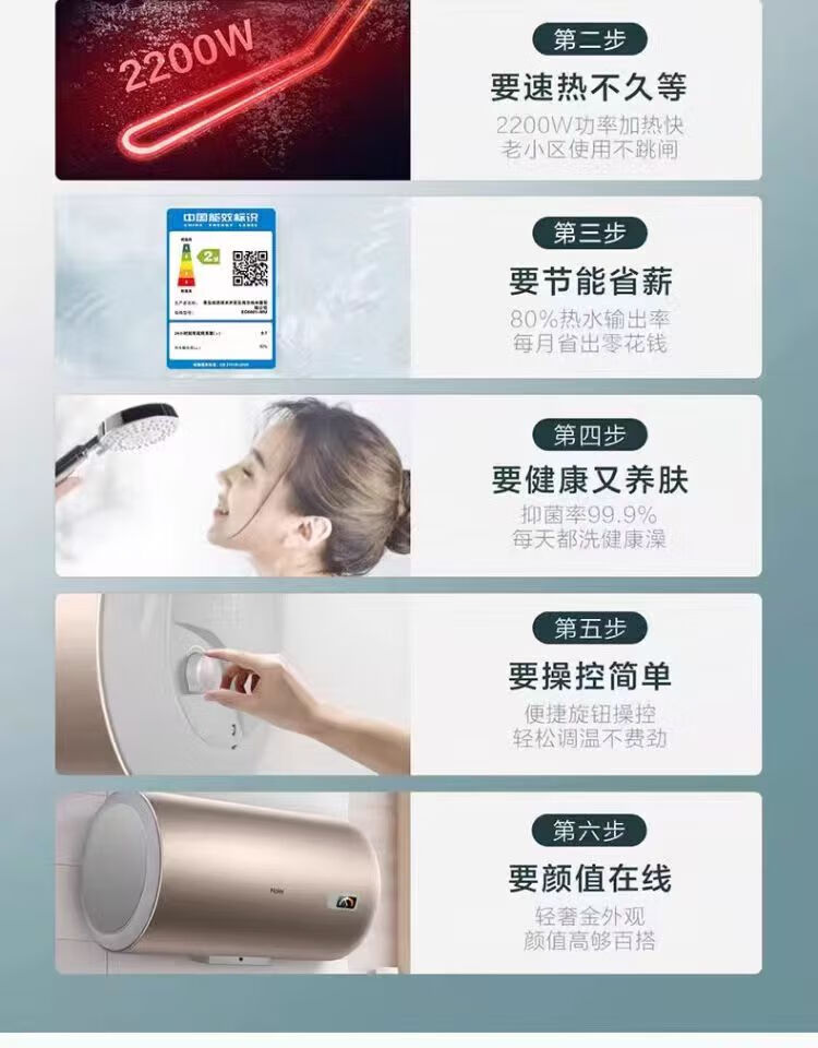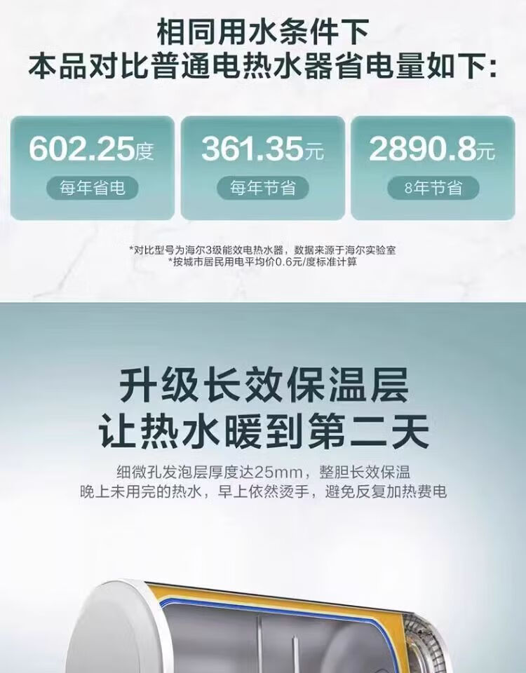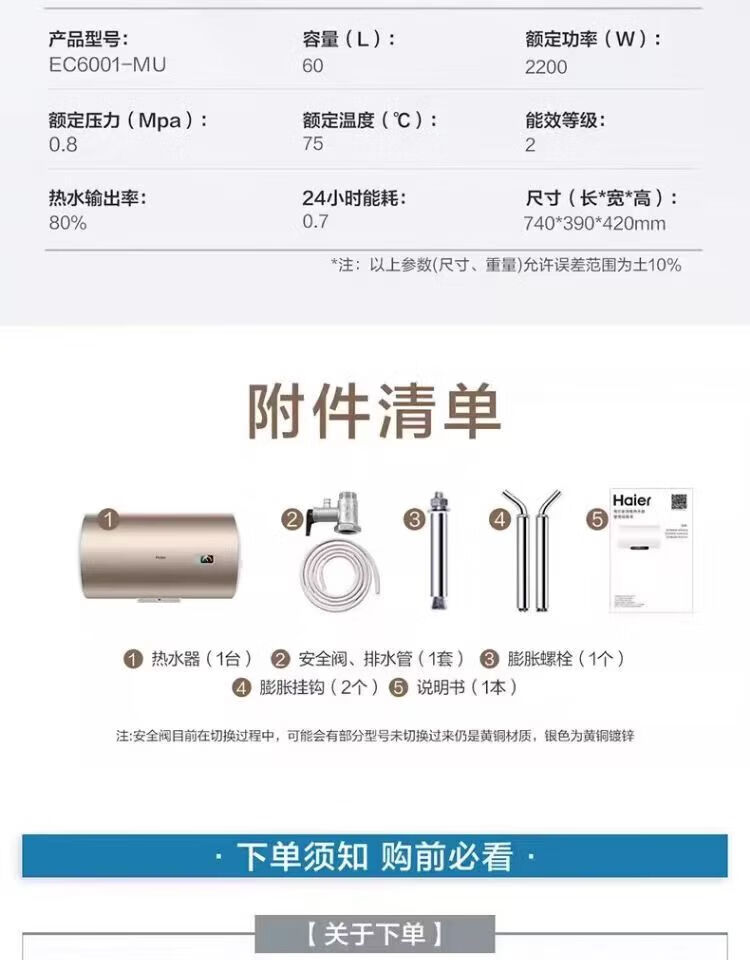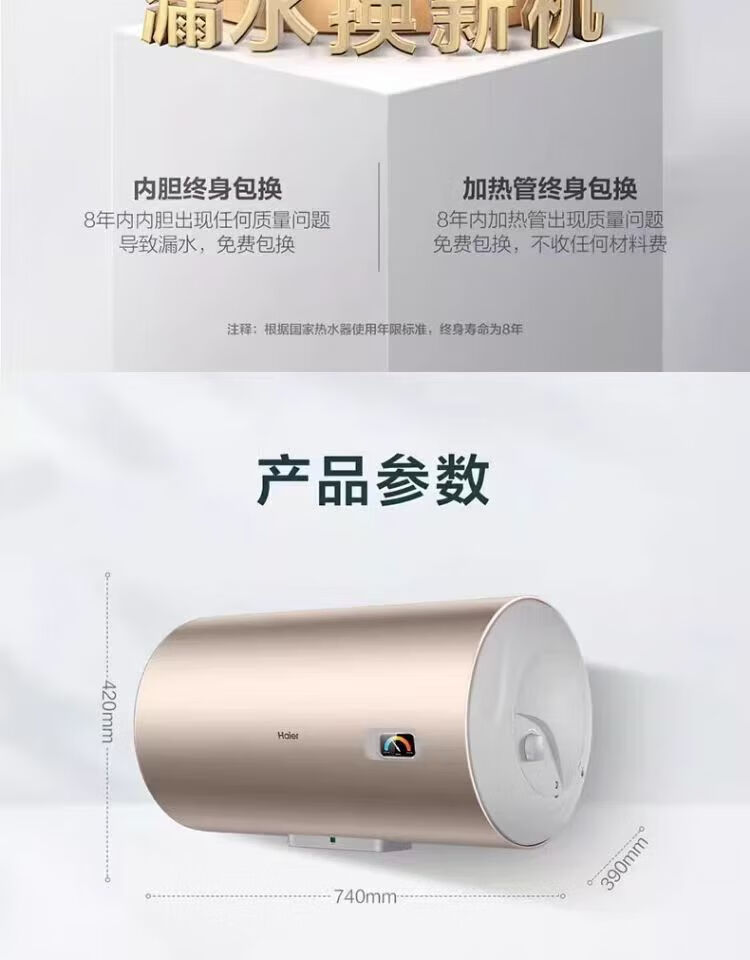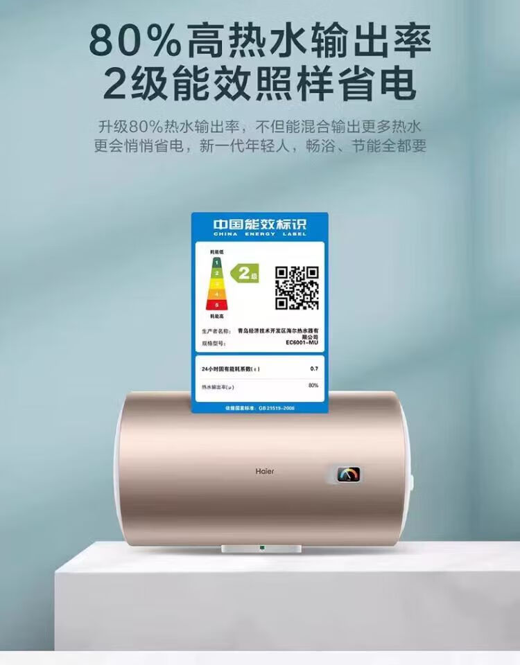 海尔(haier)EC6001-MU电热水器家用节能省电速热洗澡储水式电热水器60升金色款租房 60L 2200W 长效保温速热金【运费自理】