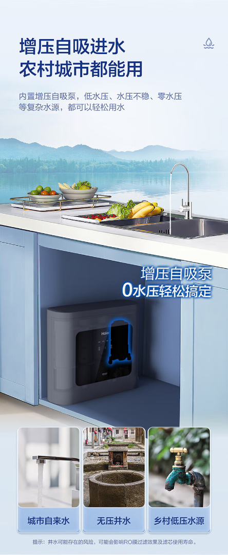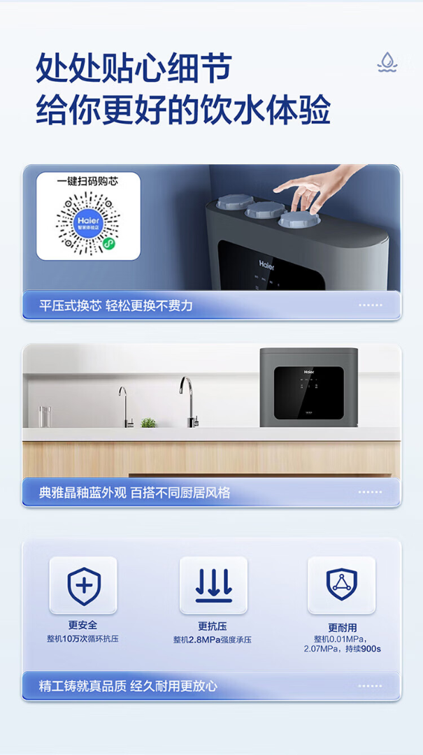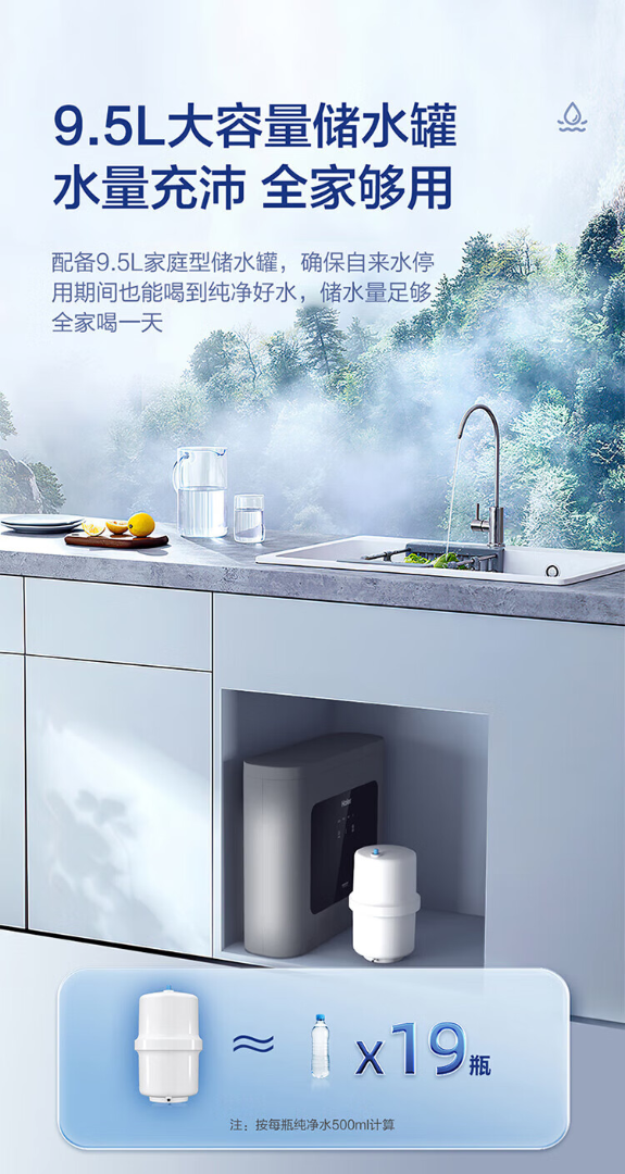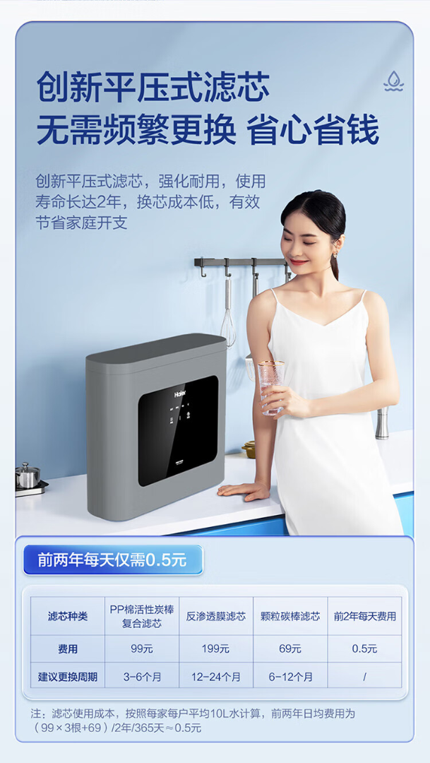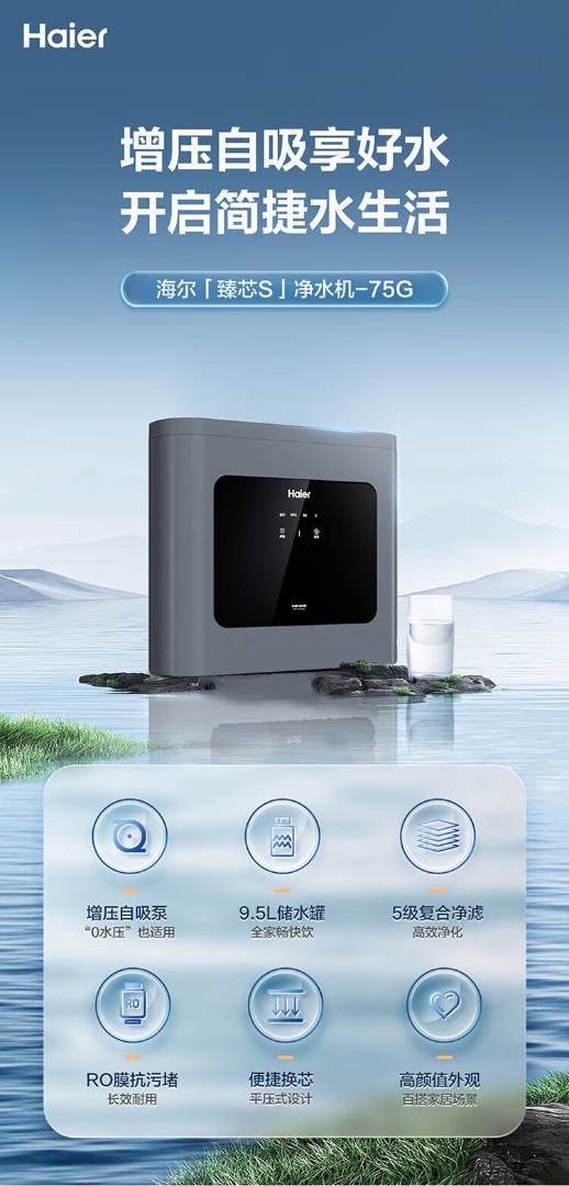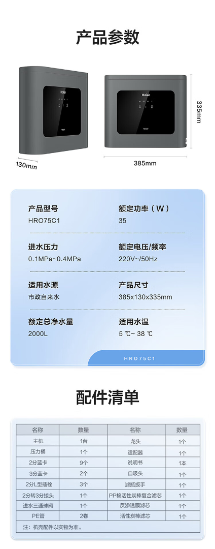 海尔家用净水器厨下即饮超薄五重复合净滤 HRO75C1【运费自理】