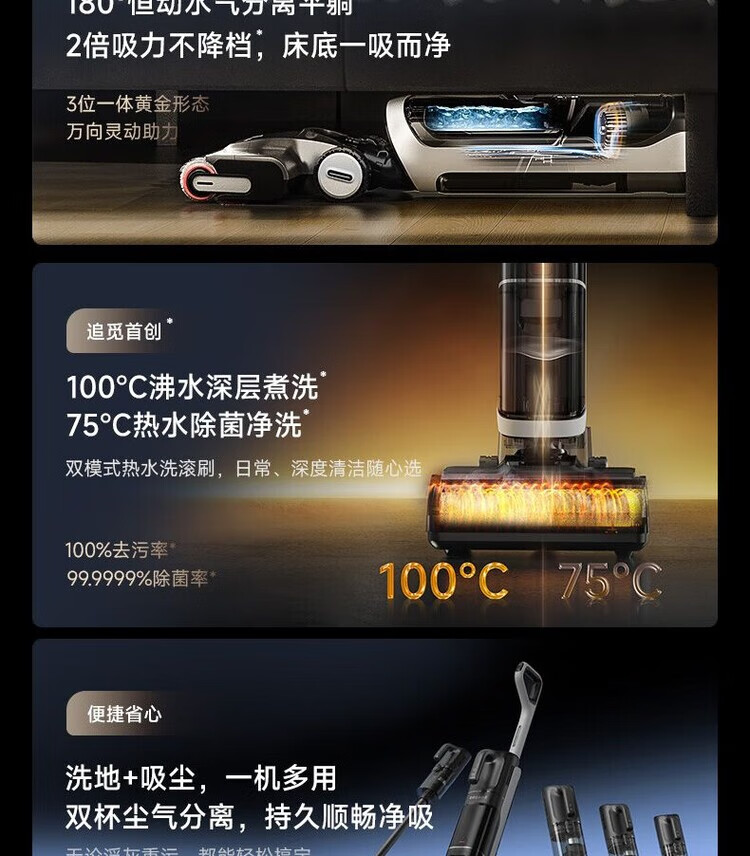 追觅H30Ultra Mix旋锋洗拖一体家用吸尘器洗地机一机多用 180平躺 【一机多用】H30U Mix
