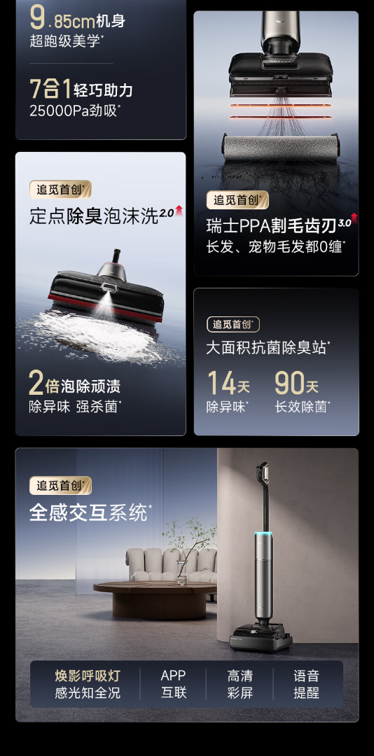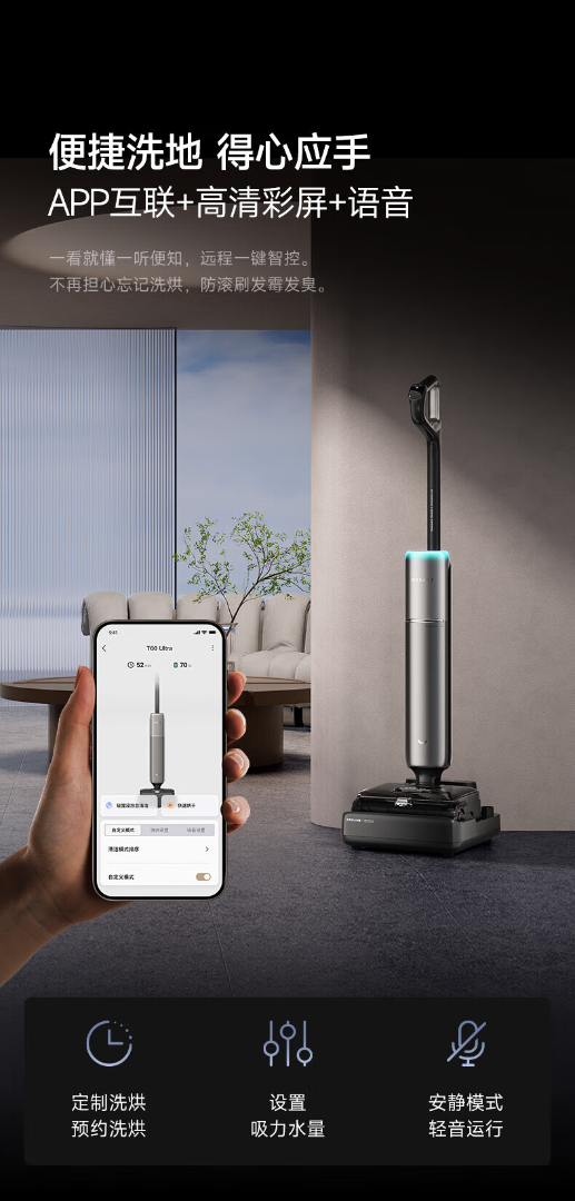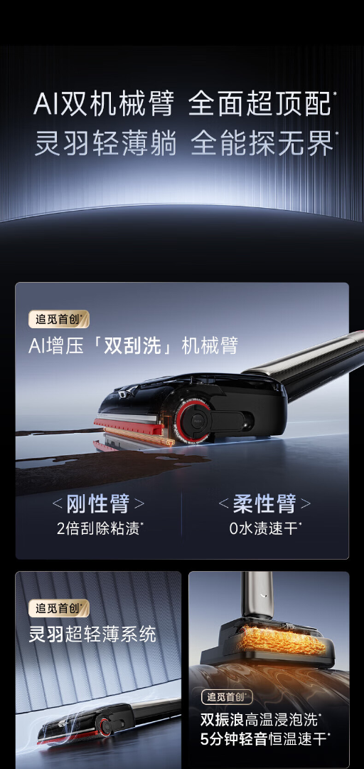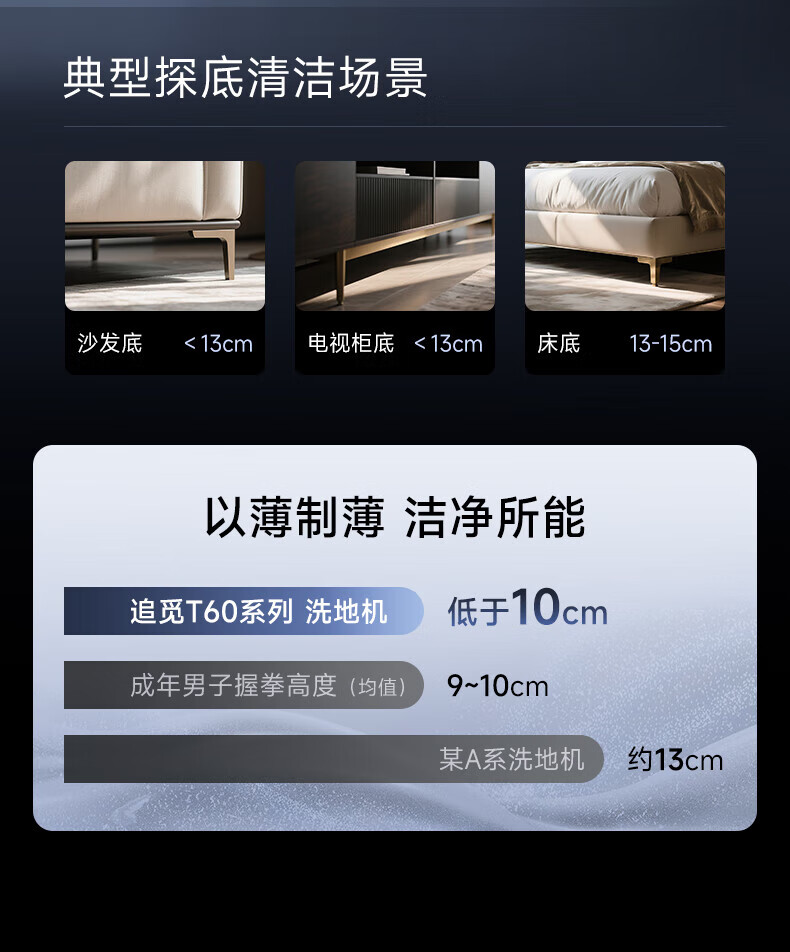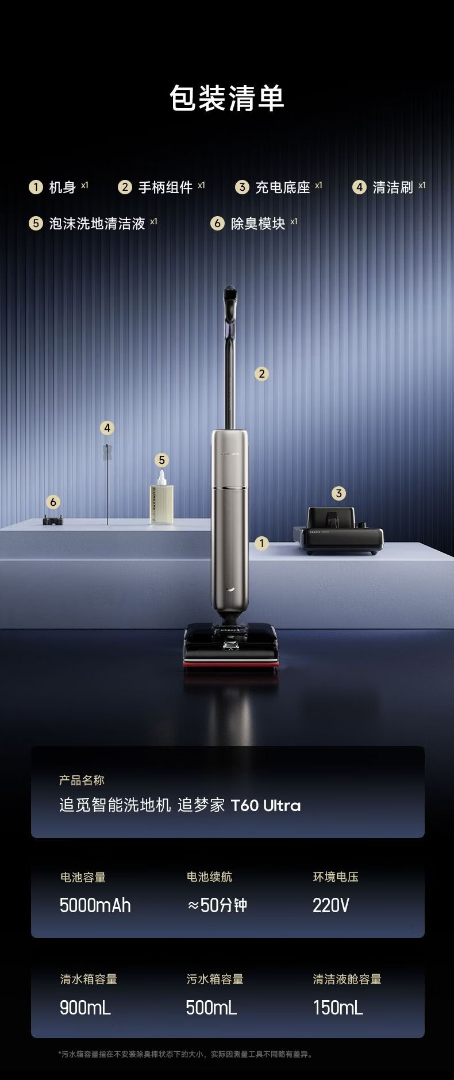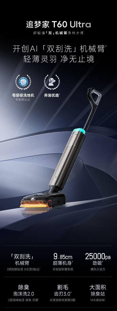 追觅T60Ultra洗地机9.85cm超薄酷炫机身洗拖吸拖一体机自动清洗家用拖扫地机吸尘器 追梦家T60Ultra