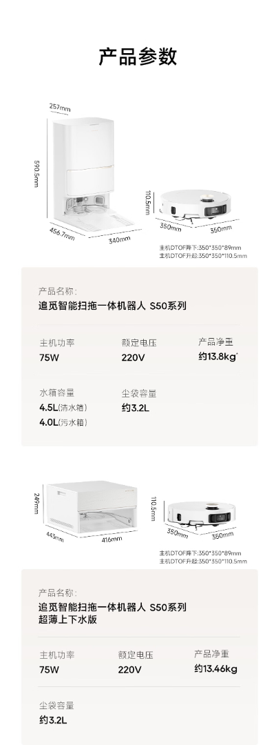 追觅S50Pro【春晚合作扫地机】扫地机器人扫拖一体自动清洗全自动基站自清洁扫地拖地水箱版RLS46CE