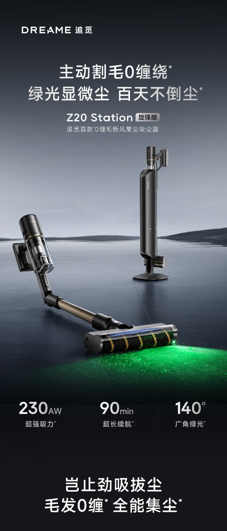 追觅【春晚合作】自集尘吸尘器Z20 Station旋锋版 家用无线230AW大吸力 除螨主动割毛 防缠毛刷 宠物