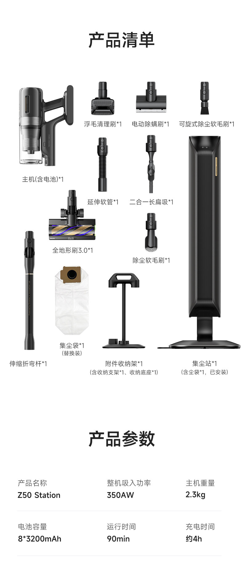 追觅Z50Station绿光显尘无线集尘吸尘器家用大吸力