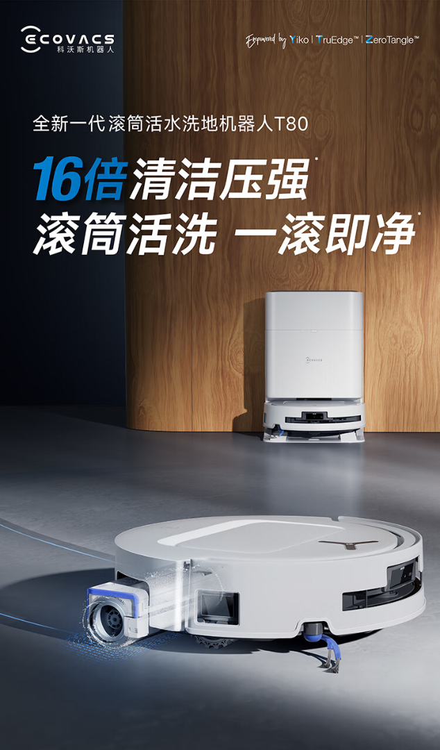 科沃斯T80扫地机器人扫拖洗烘一体自动清洗滚筒洗地机器人智能语音水箱版