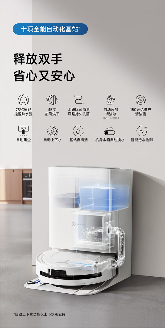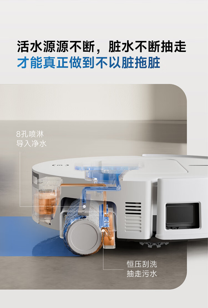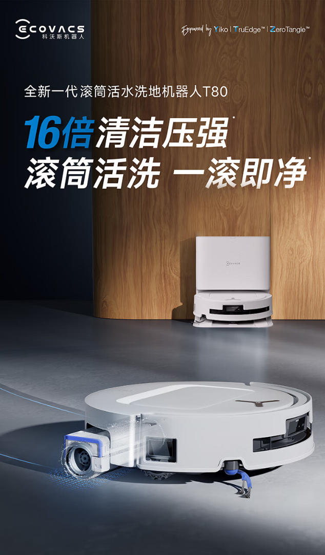 科沃斯T80扫地机器人扫拖洗烘一体自动清洗恒压滚筒洗地机器人智能语音全自动上下水版