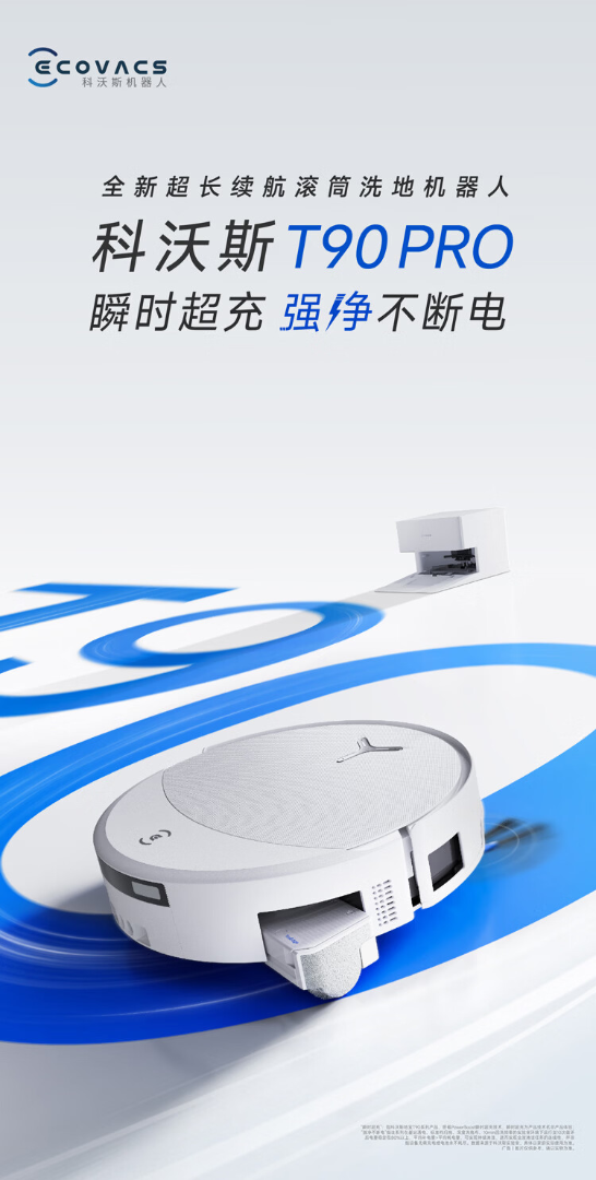 科沃斯T90 PRO扫地机器人【重磅新品】扫拖洗烘一体自动清洗集尘热水洗抹布热风烘干滚筒活水洗地上下水