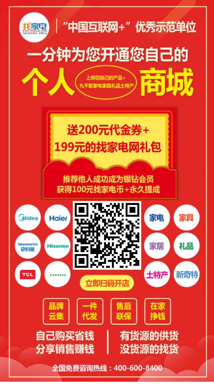 “家电/家具/家居/土特产”批发•新零售的“美团外卖”版,全品牌全品类(电商机+线下机)有货源的来供货,没货源的来找货,另外注册银钻会员。