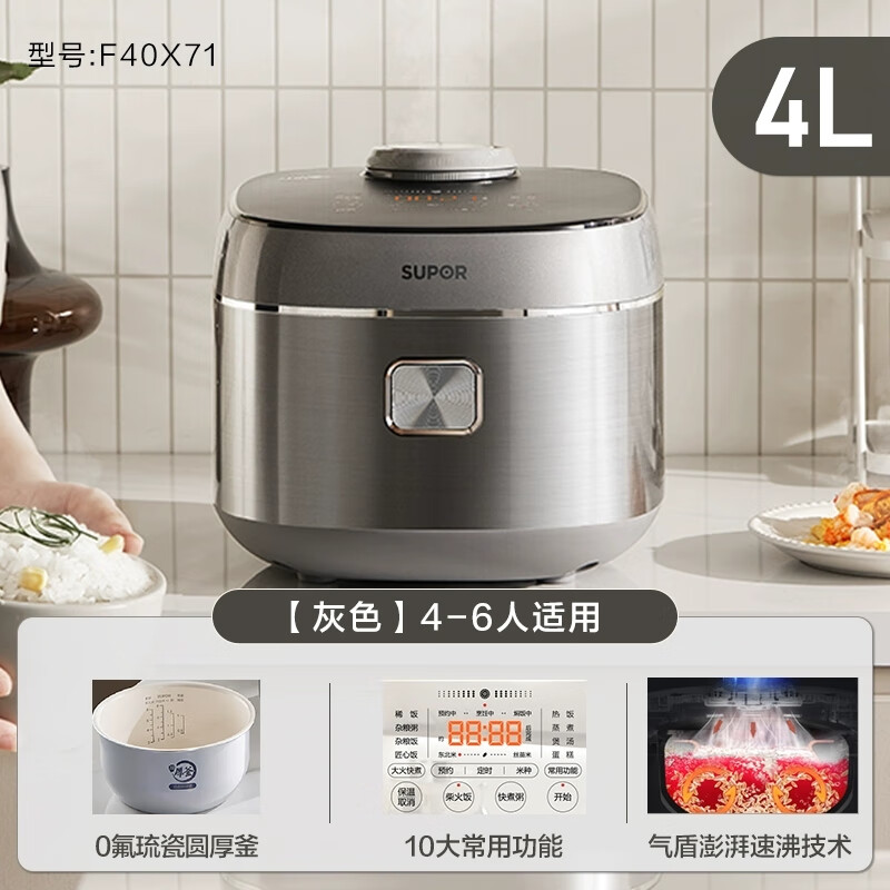 苏泊尔小快电饭煲家用4L大容量多功能可拆洗上盖预约煮饭锅F40X71 4L
