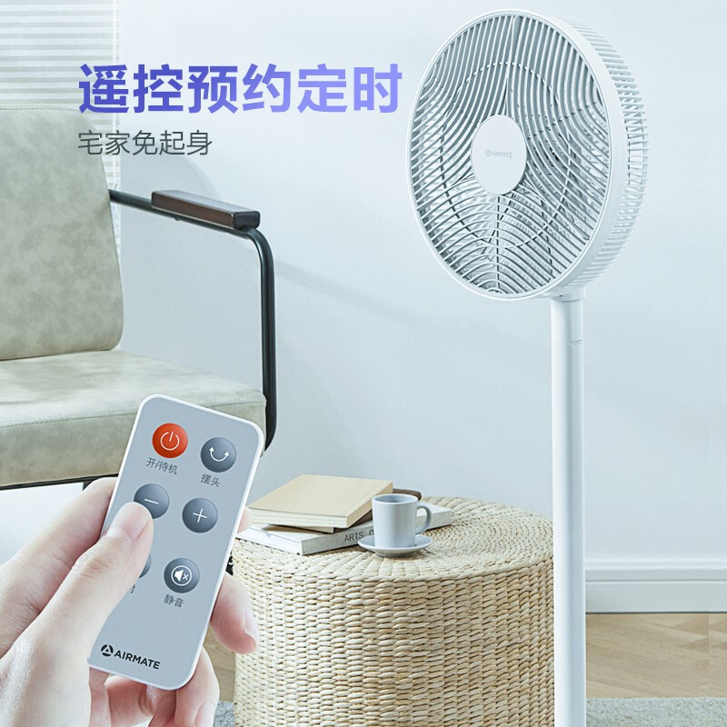 艾美特(Airmate)全功能遥控落地扇FS40-R51 8H预约定时 多角度调节 五叶大风量 黑色遥控款..