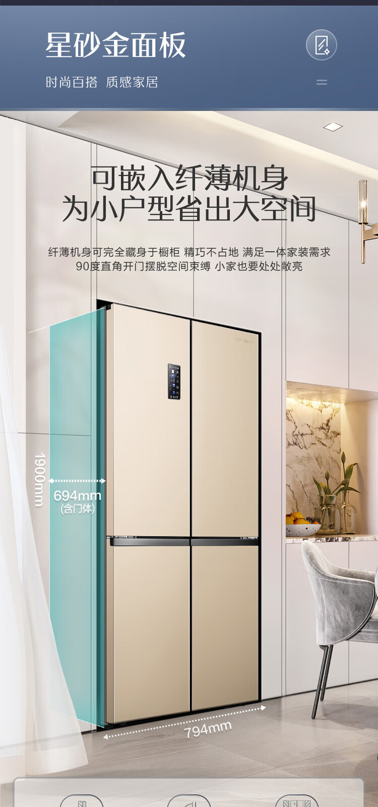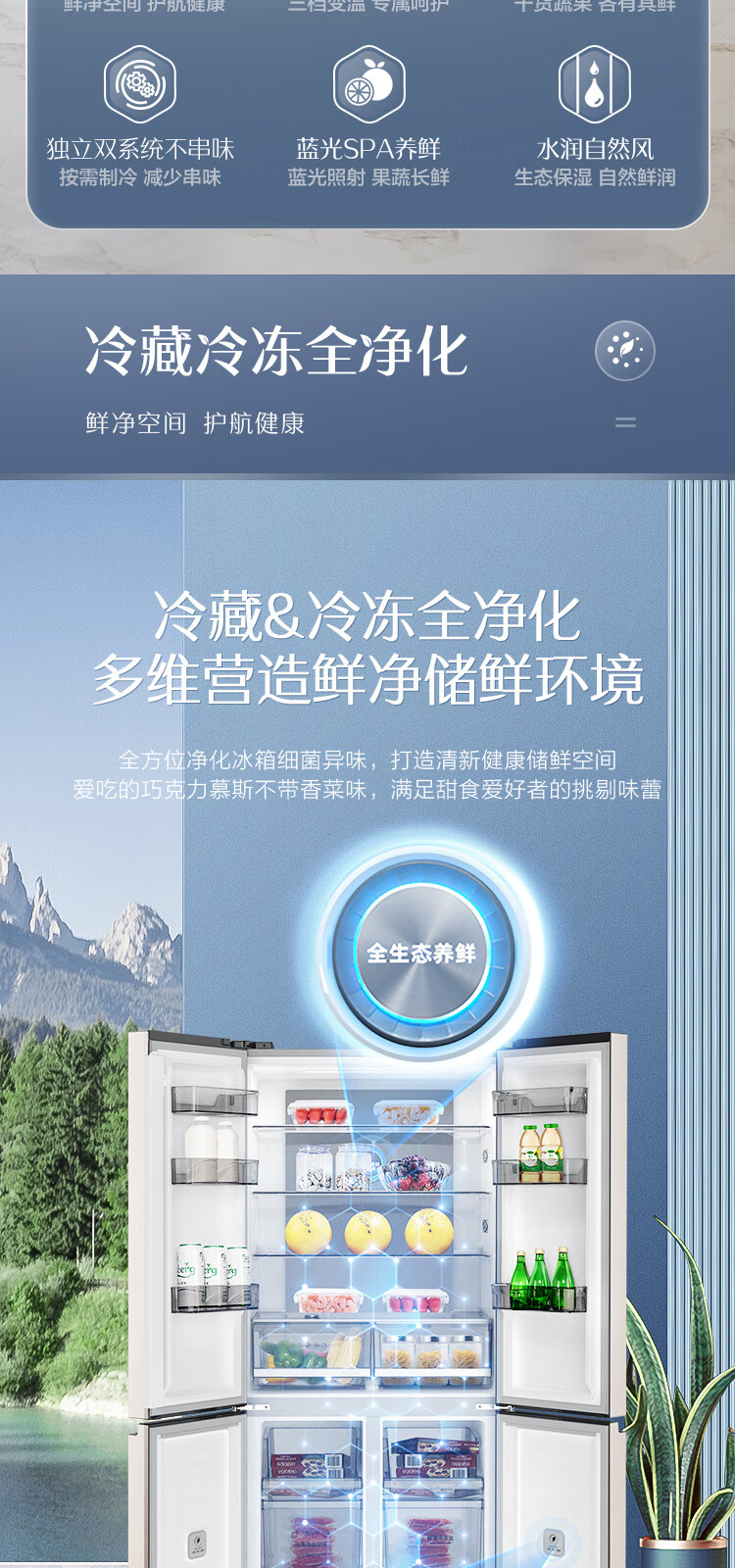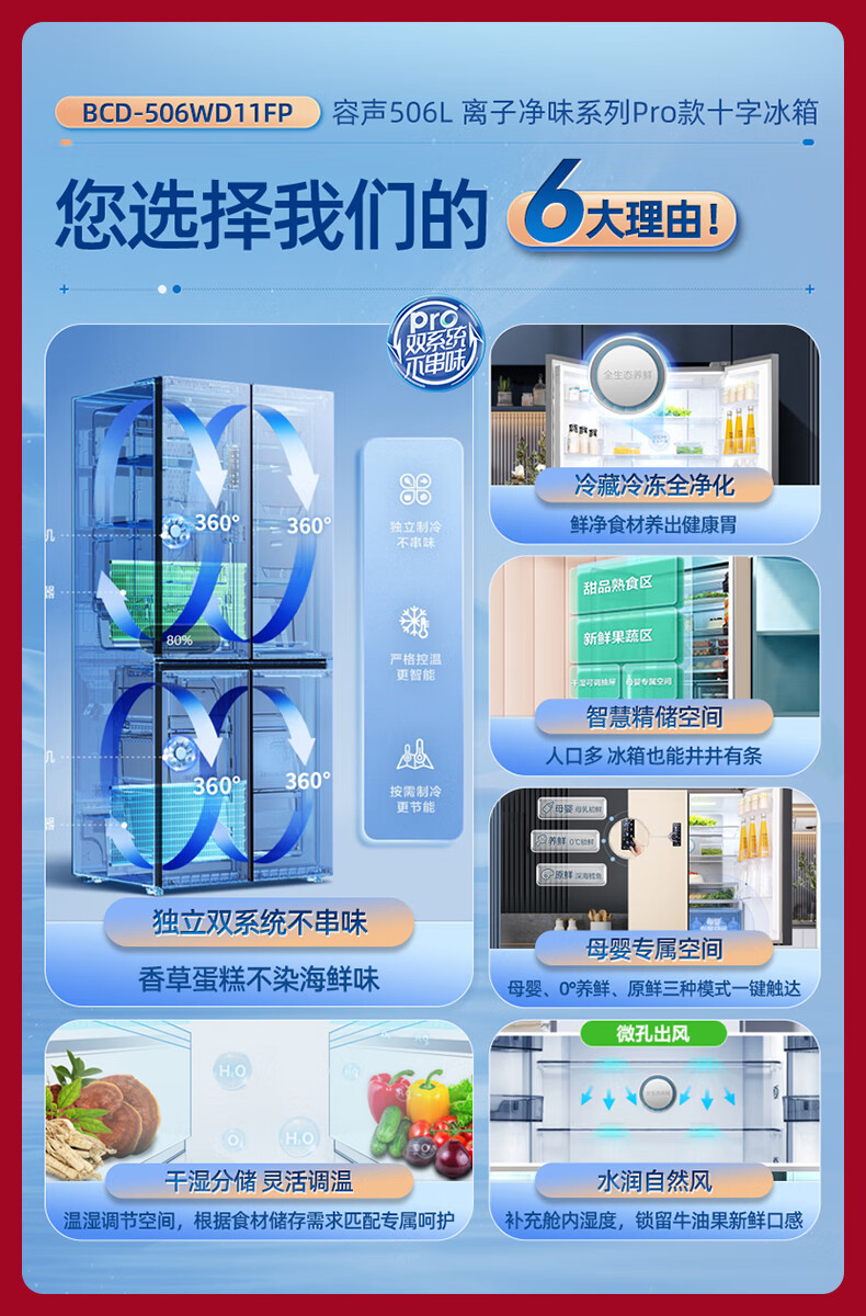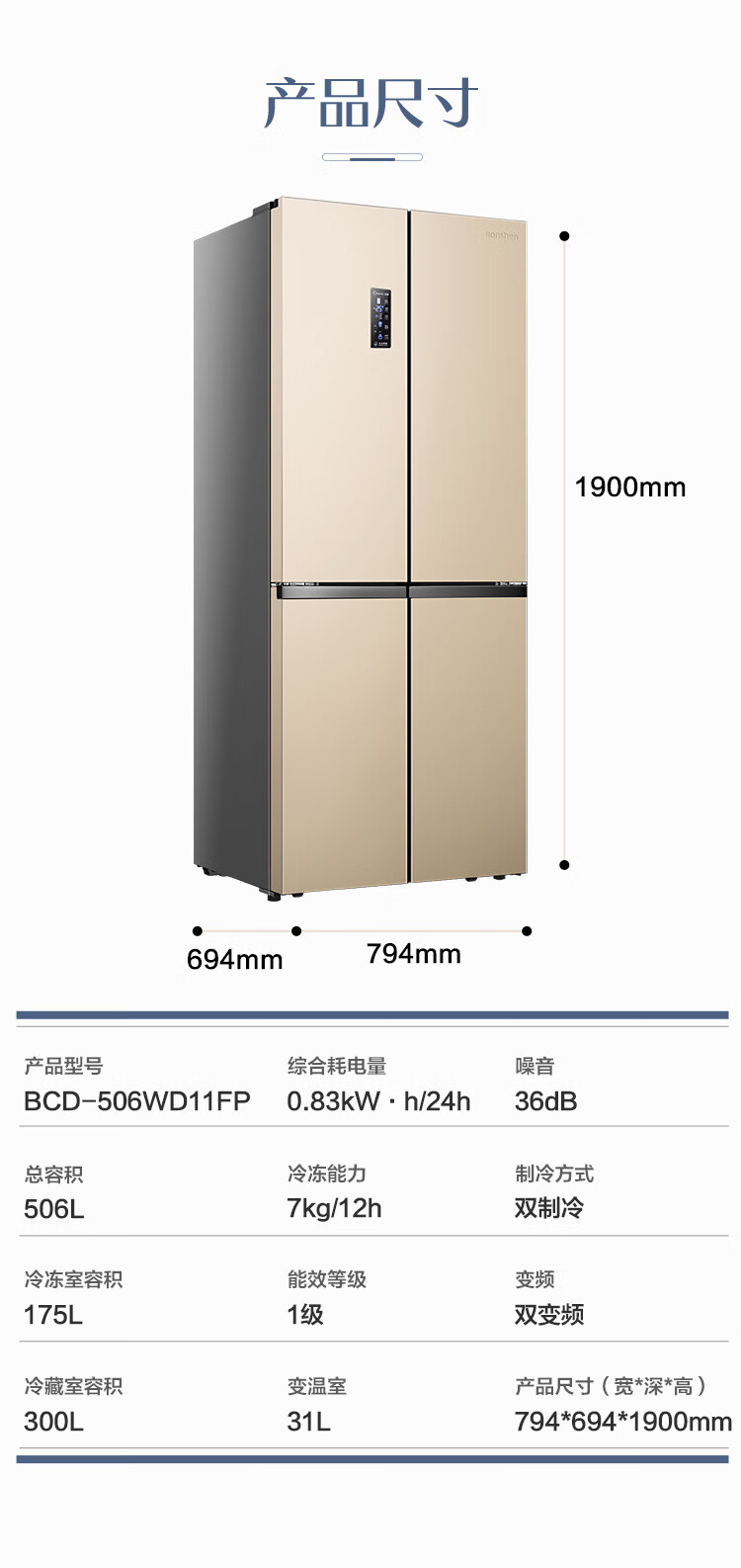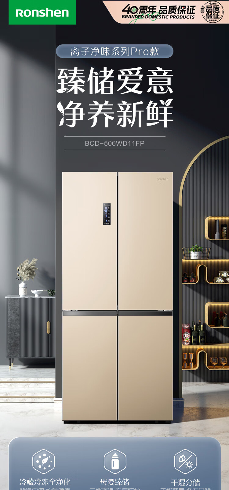 容声(Ronshen)BCD-506WD11FP 离子净味Pro 506升变频一级能效十字对开门四开门电冰箱家用无霜双循环大容量