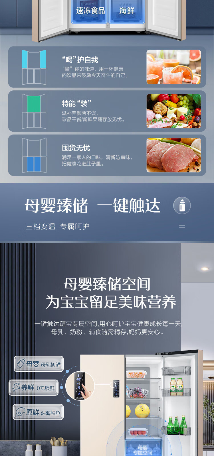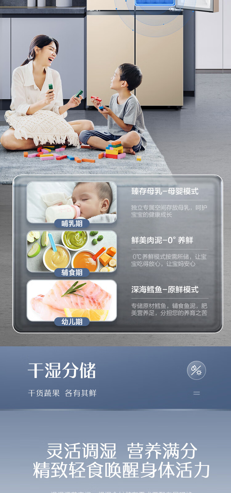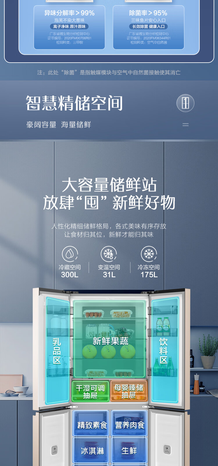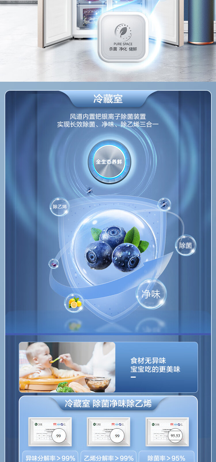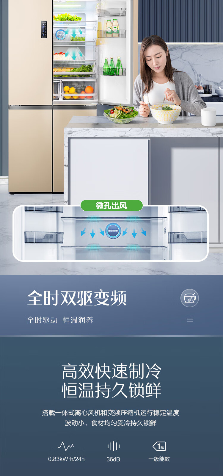容声(Ronshen)BCD-506WD11FP 离子净味Pro 506升变频一级能效十字对开门四开门电冰箱家用无霜双循环大容量