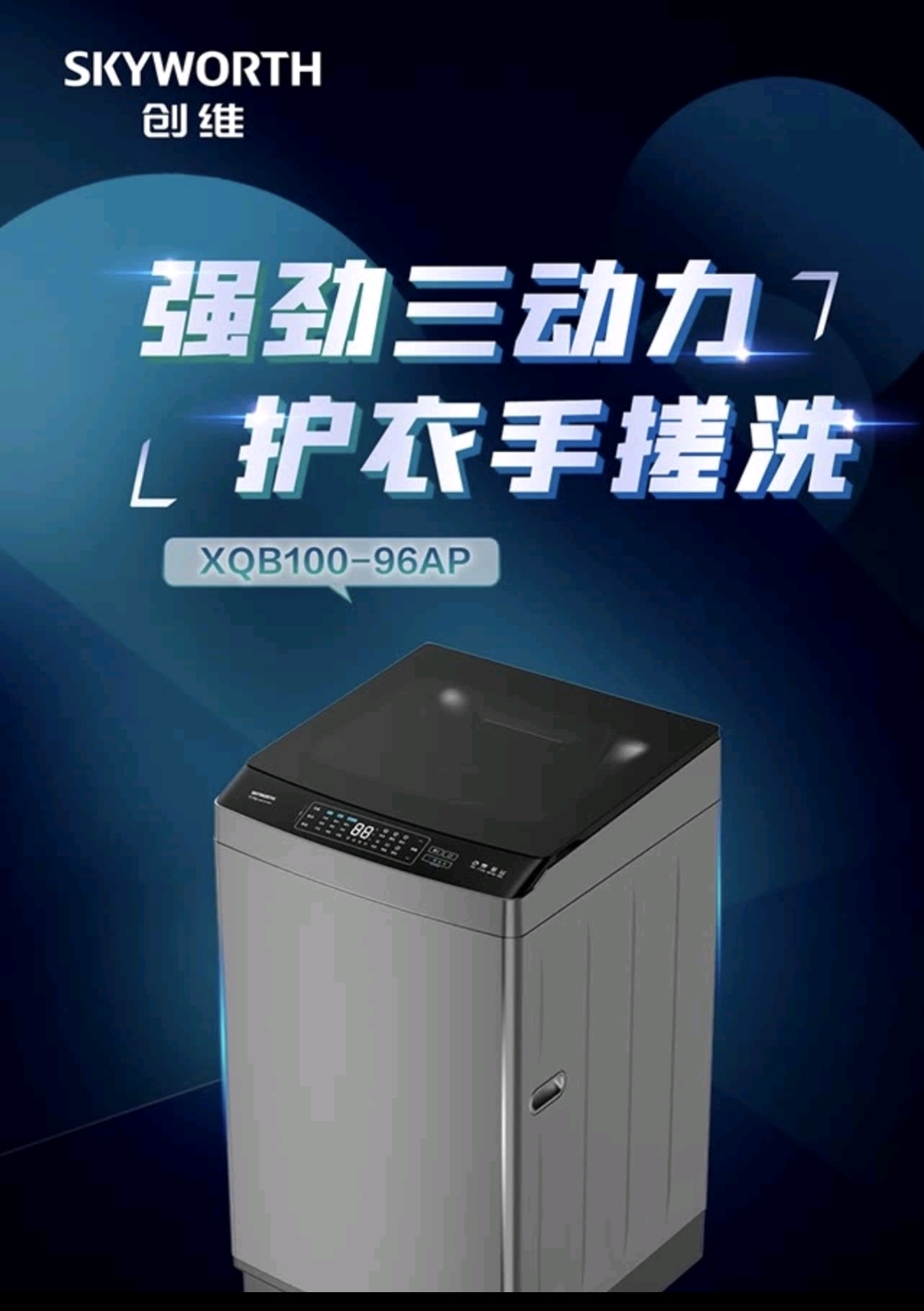 创维(Skyworth)XQB100-96AP,三维手搓洗-六维魔力波一键智洗-10档水位-桶自洁