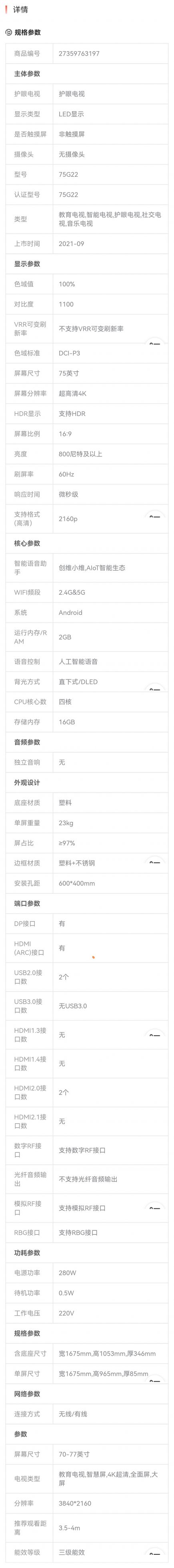 创维(SKYWORTH)75G22 75英寸 4k超高清 防蓝光 超薄无边全面屏 免遥控智能语音电视