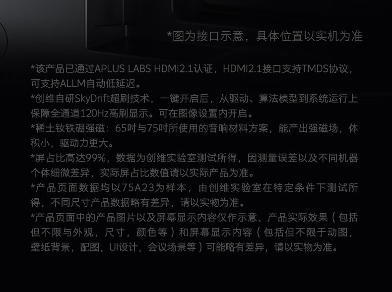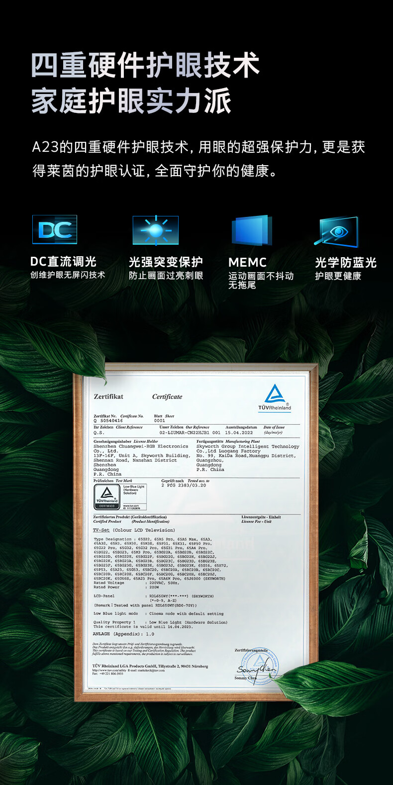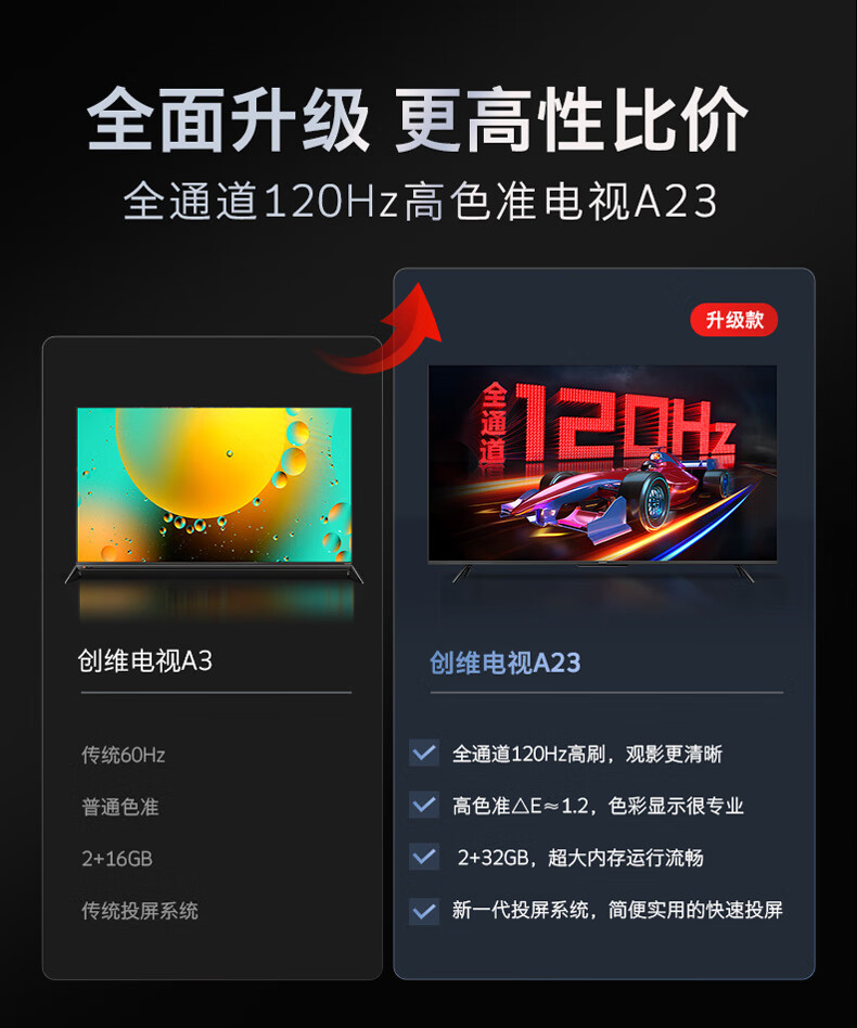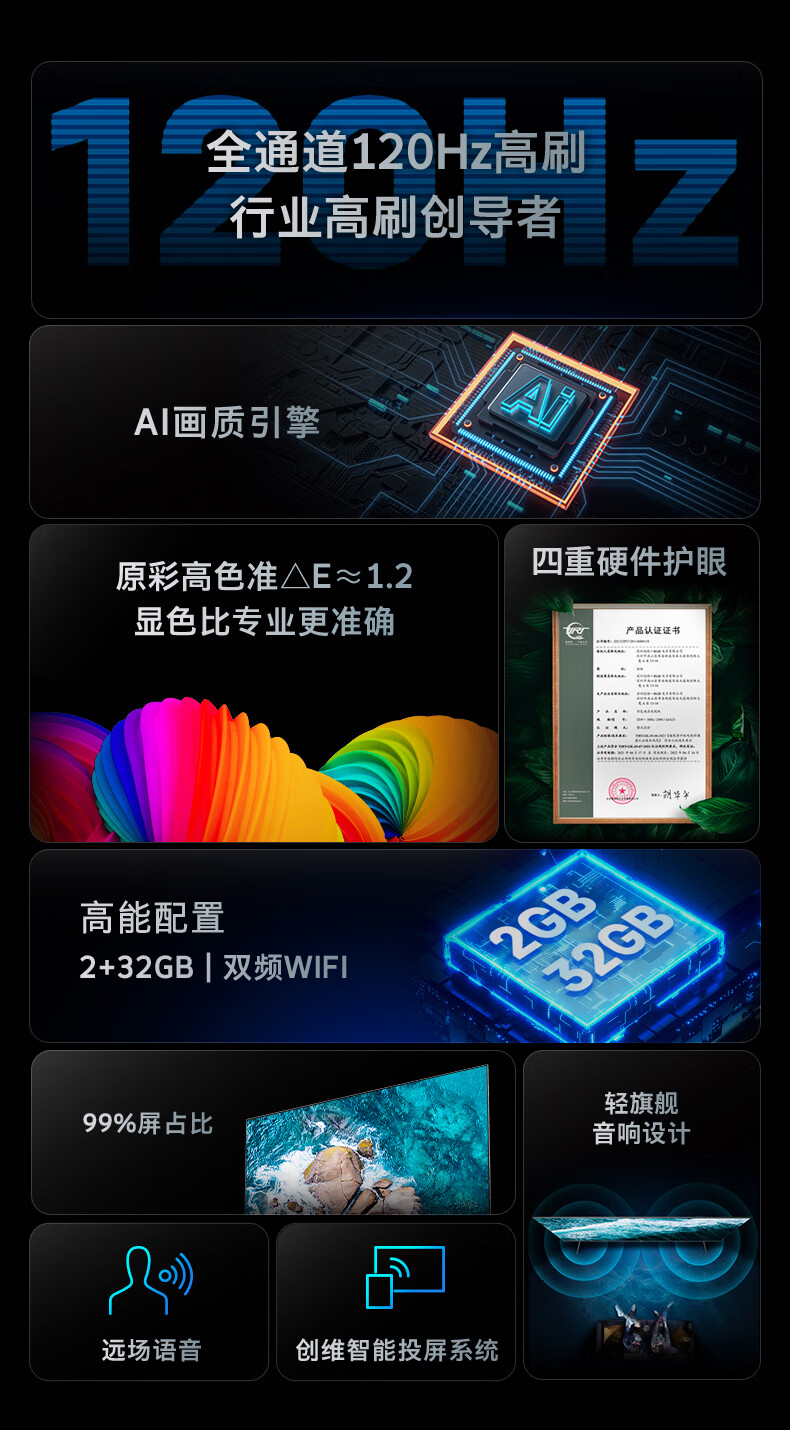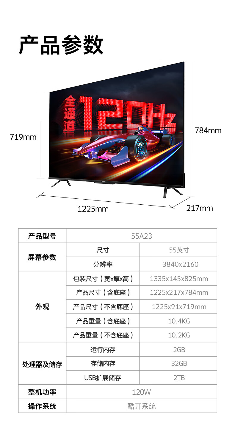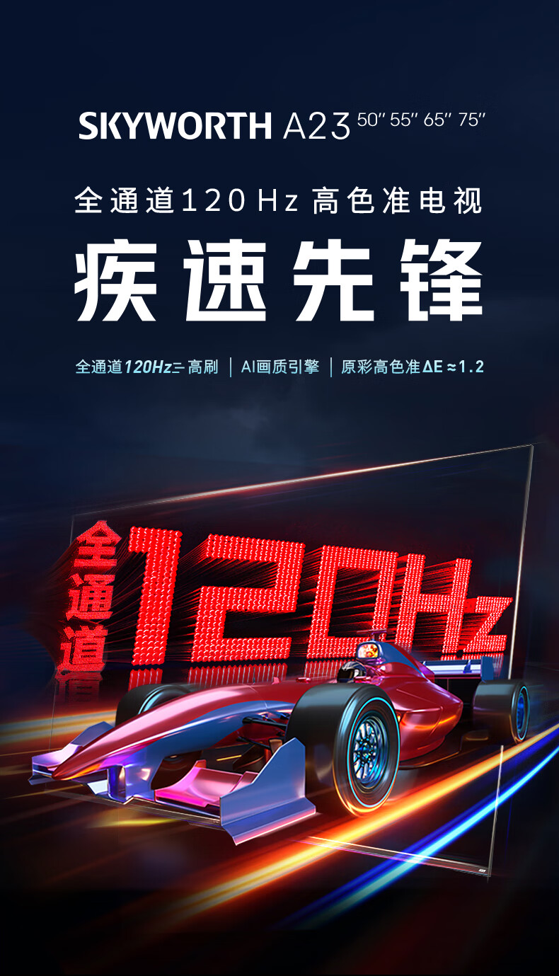 创维电视 55A23 电视机 55英寸 全通道120Hz 色准△E=1.2 2+32G 4K护眼声控全面屏