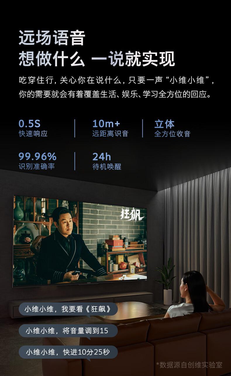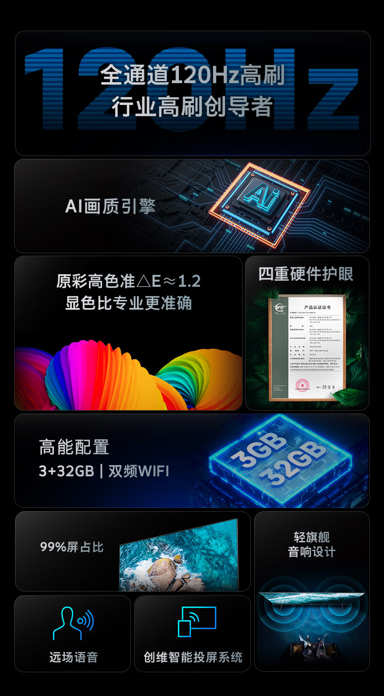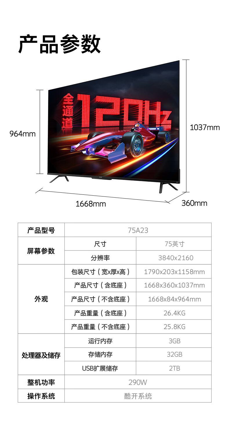 创维电视 75A23 电视机 75英寸 全通道120Hz 色准△E=1.2 3+32G 4K护眼声控全面屏