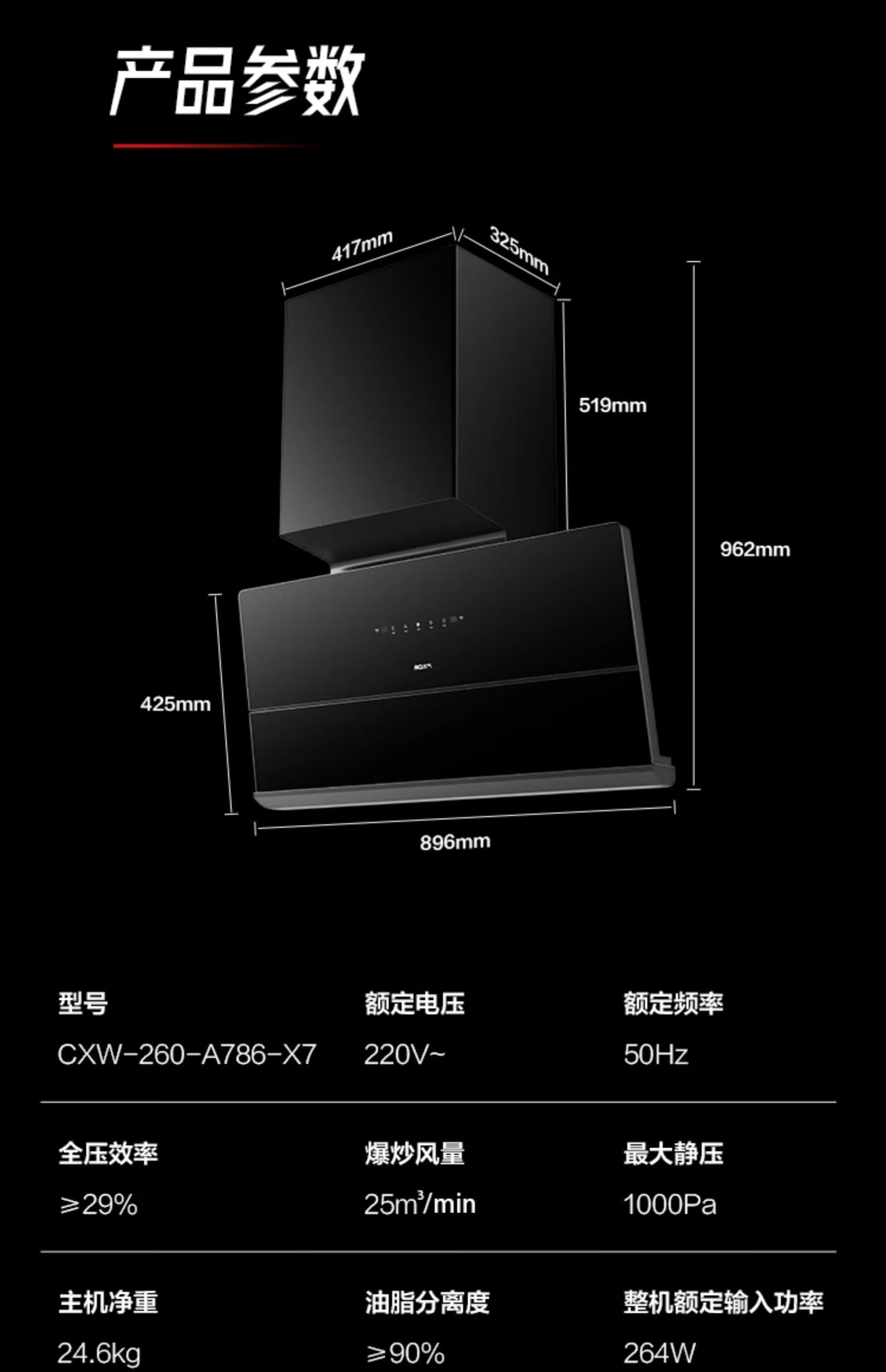 ROBAM老板名气A786-X7超薄油烟机侧吸变频25立方大吸力挥手感应抽油烟机 A786-X7【单烟机】