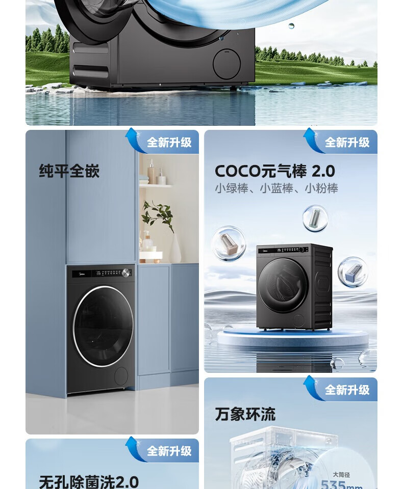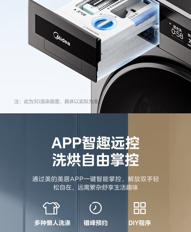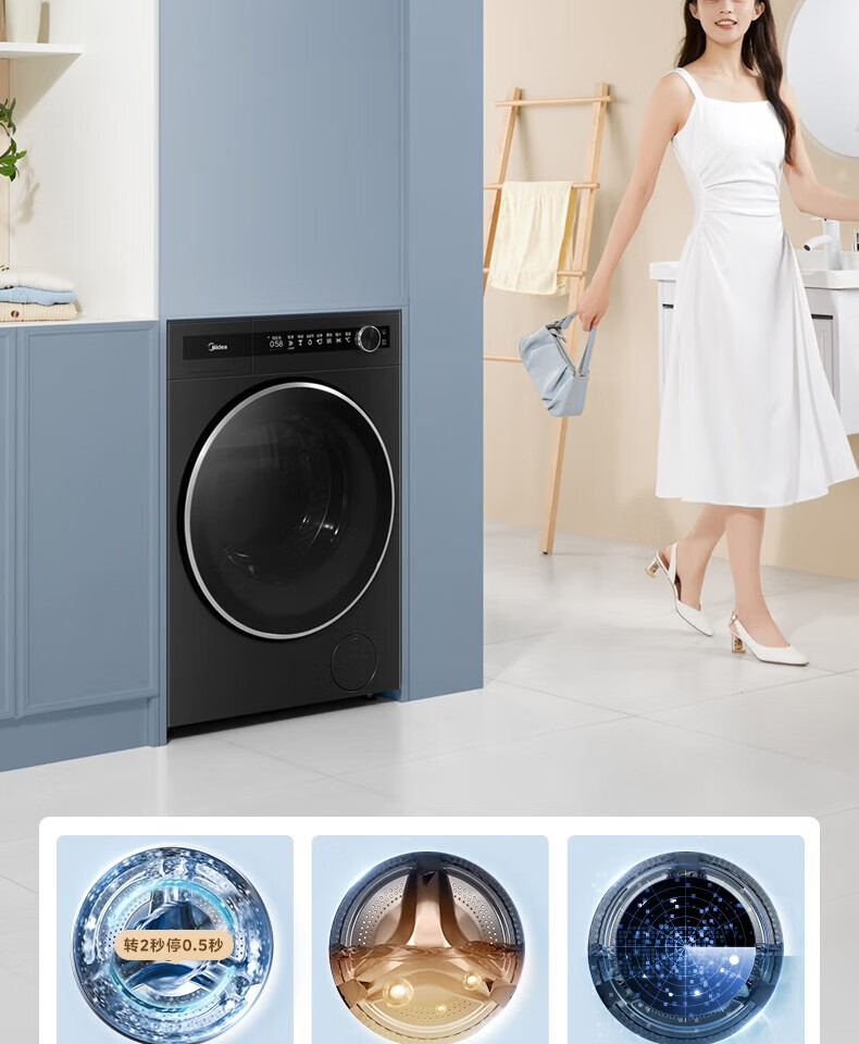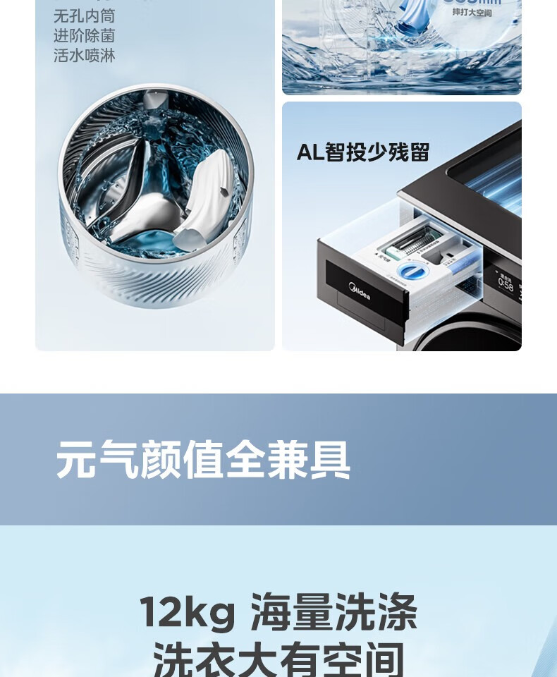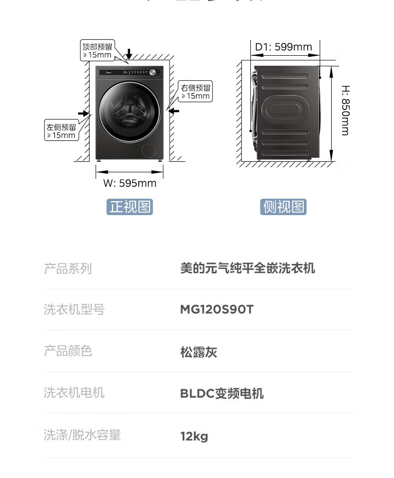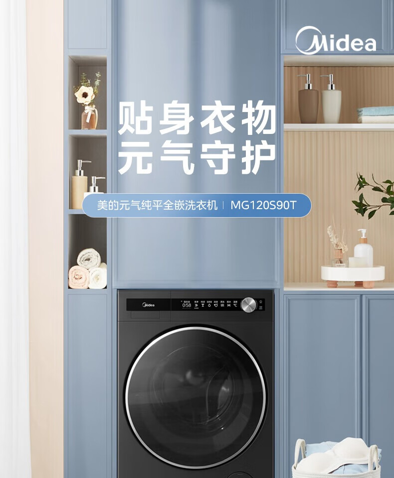 美的美的滚筒洗衣机超薄全嵌MG120S90T 12公斤超元气系列1.1 智能投发 除菌洗 超薄全嵌