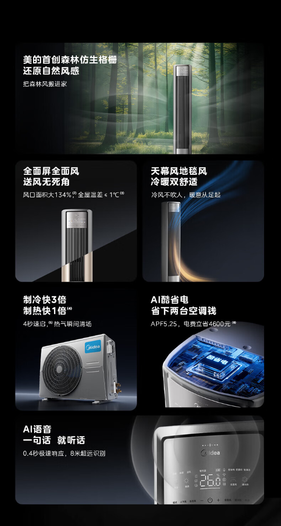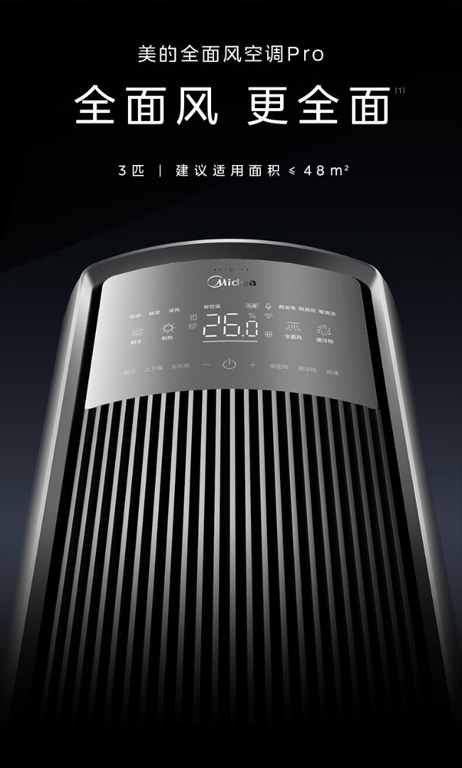 美的(Midea)空调 3匹 全面风pro 客厅舒适风省电节能大风量 贴壁送风会唱歌空调柜机立式KFR-72LW/N8QM1P