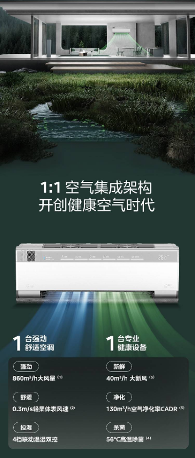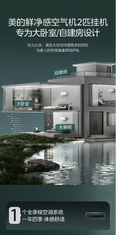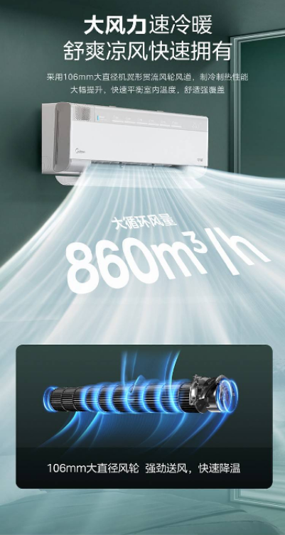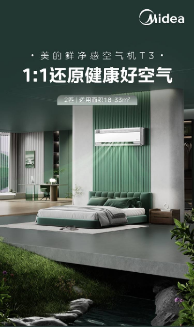 美的(Midea)T3空气机挂机新风空调变频冷暖 省电家用静音节能客厅卧室 线下同款送货入户无风感 2匹 一级能效 KFR-50GW/T3