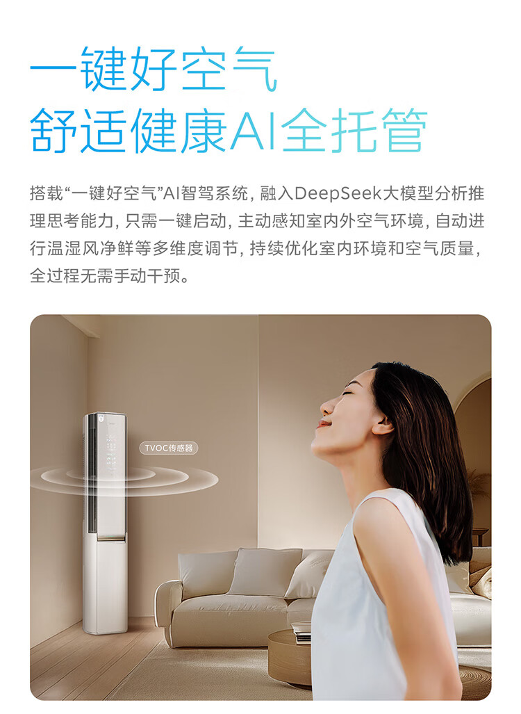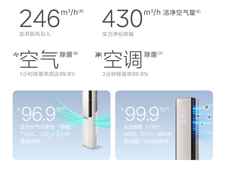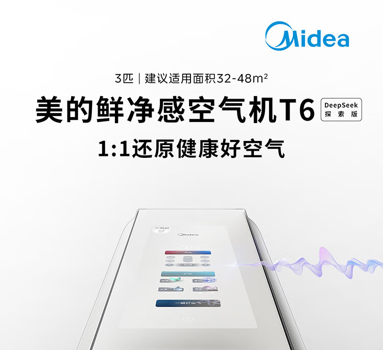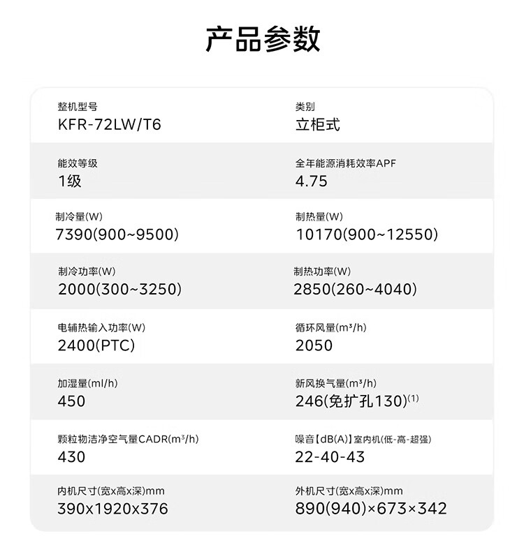 美的空调空气机T6大3匹 新一级能效变频 纯铜管 无风感 健康风双排铜管立式柜机 KFR-72LW/T6