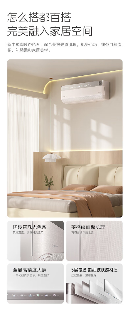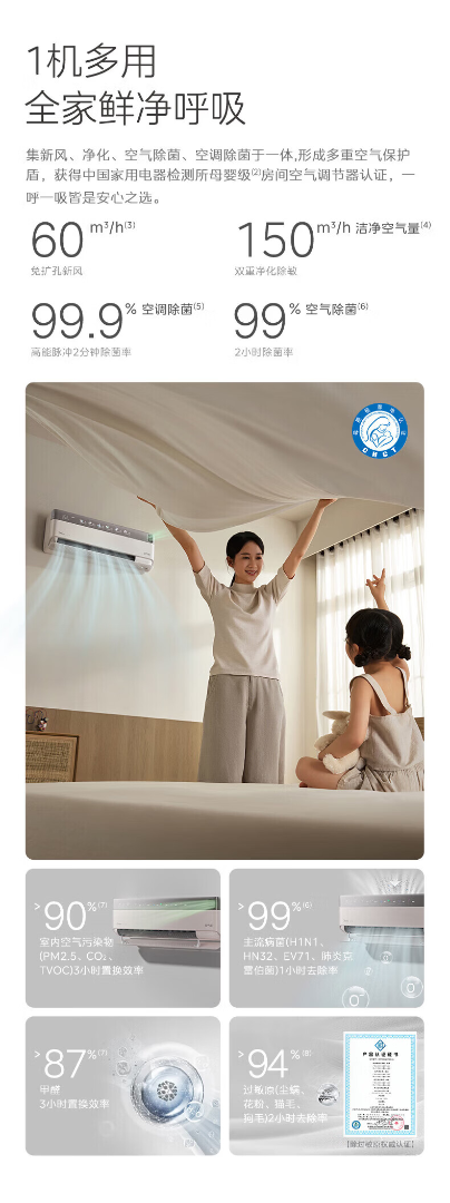 美的空调 空气机 新一级能效变频冷暖 新风净化 纯铜管 健康风 无风感 空调挂机 空气机 T6 大1.5匹 新风净化无风感