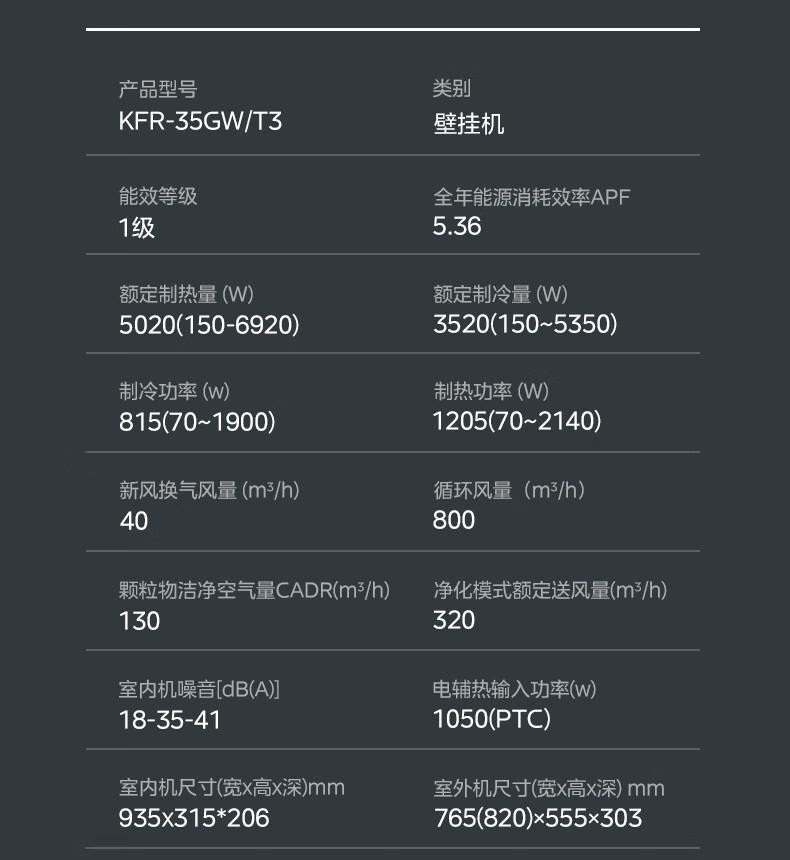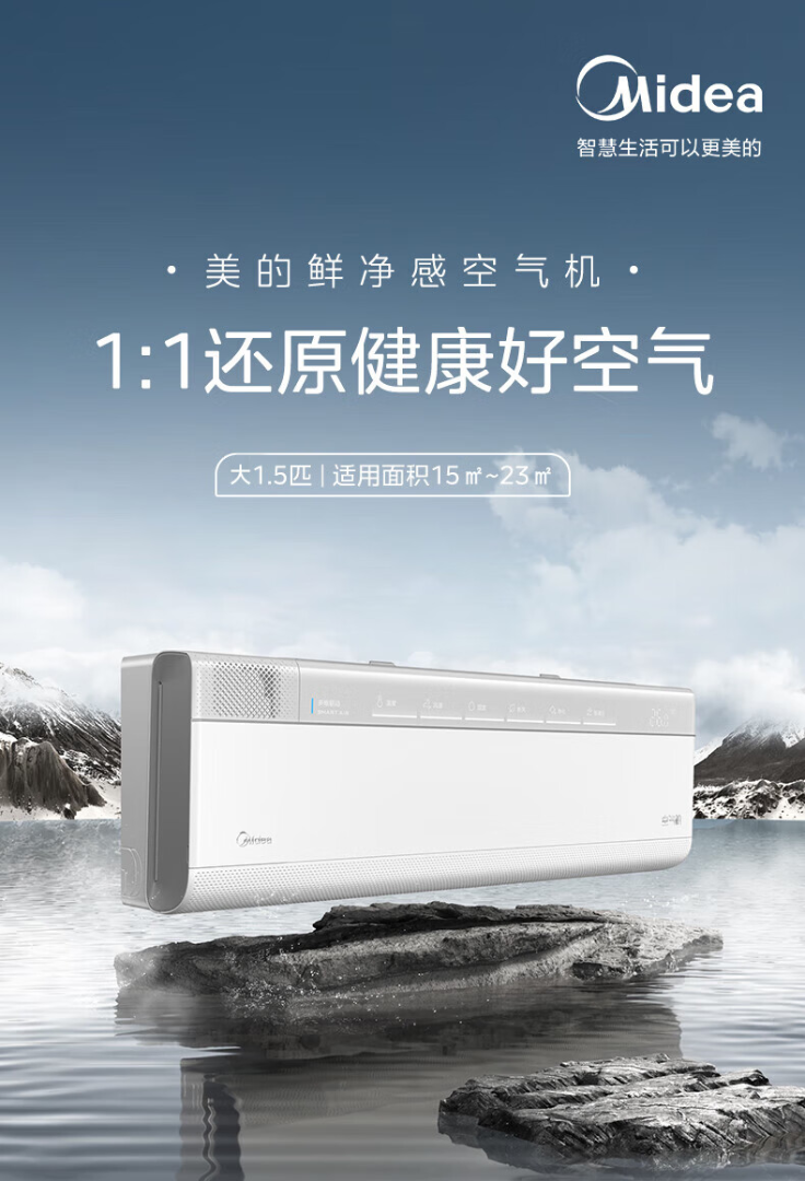 美的空调 空气机T3大1.5匹 新一级能效变频 新风净化 纯铜管 无风感 空调挂机 KFR-35GW/T3
