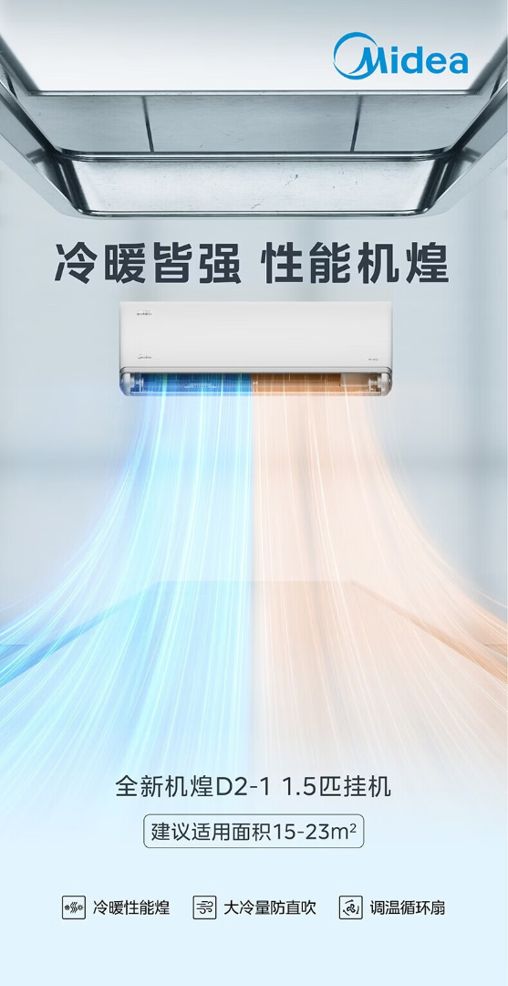 美的(Midea)机煌全新升级 空调挂机 壁挂式 变频冷暖 超一级能效卧室节能 大1.5匹 一级能效KFR-35GW/D2-1