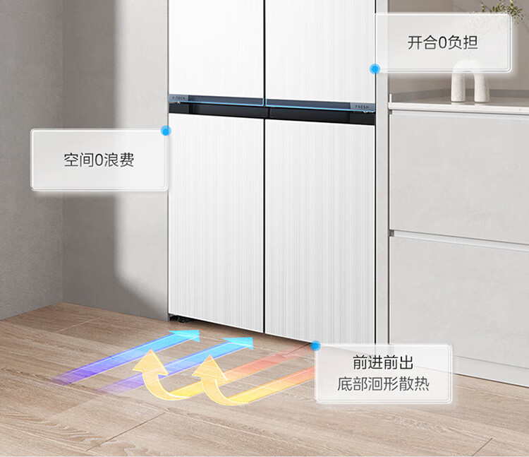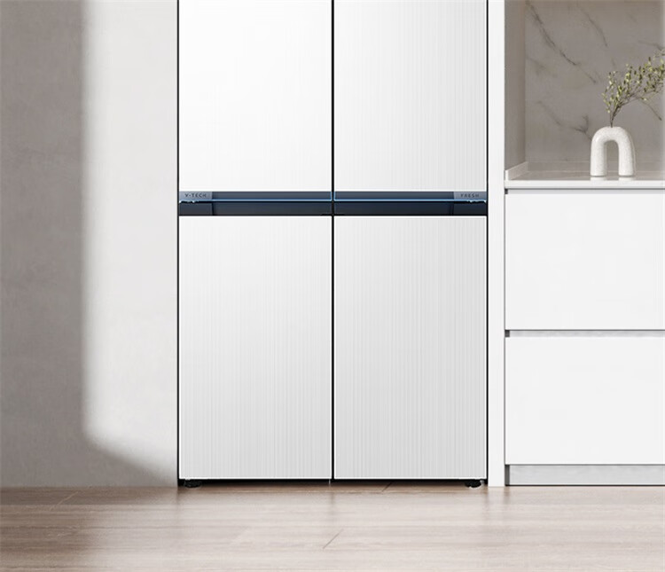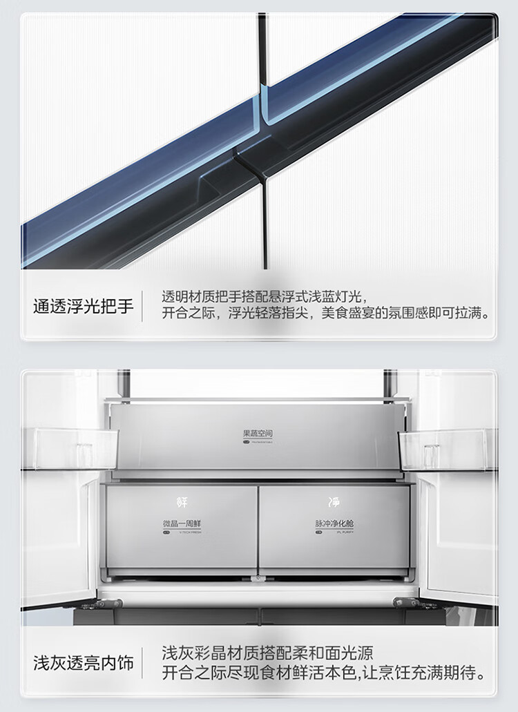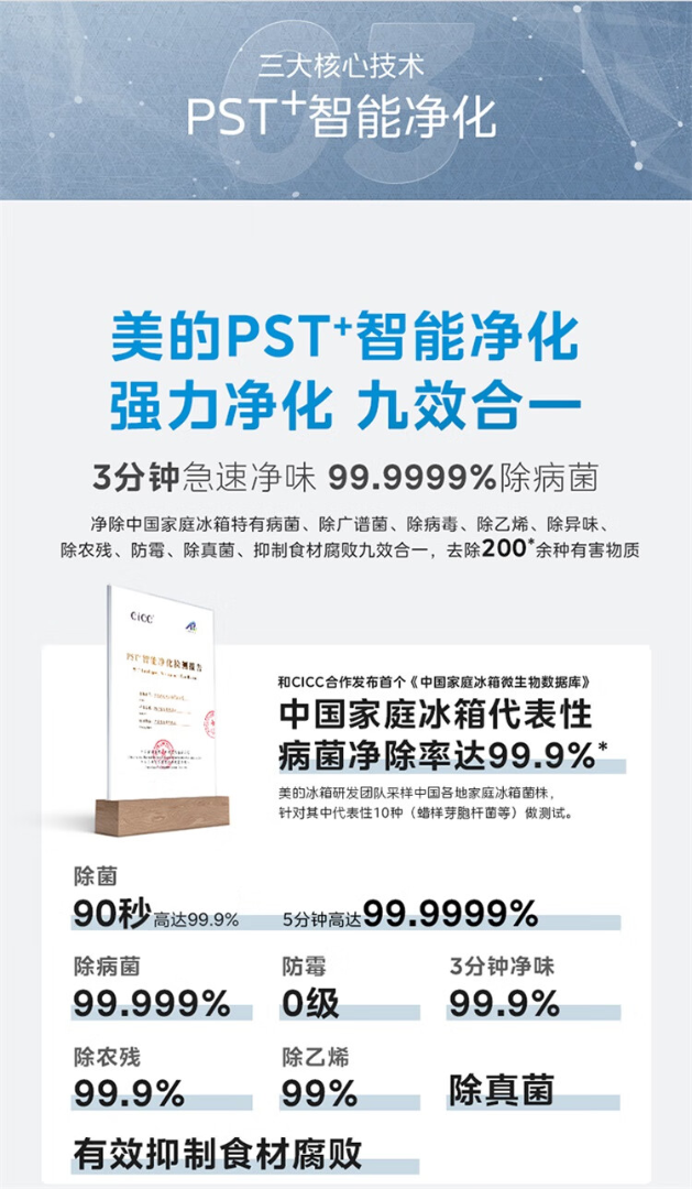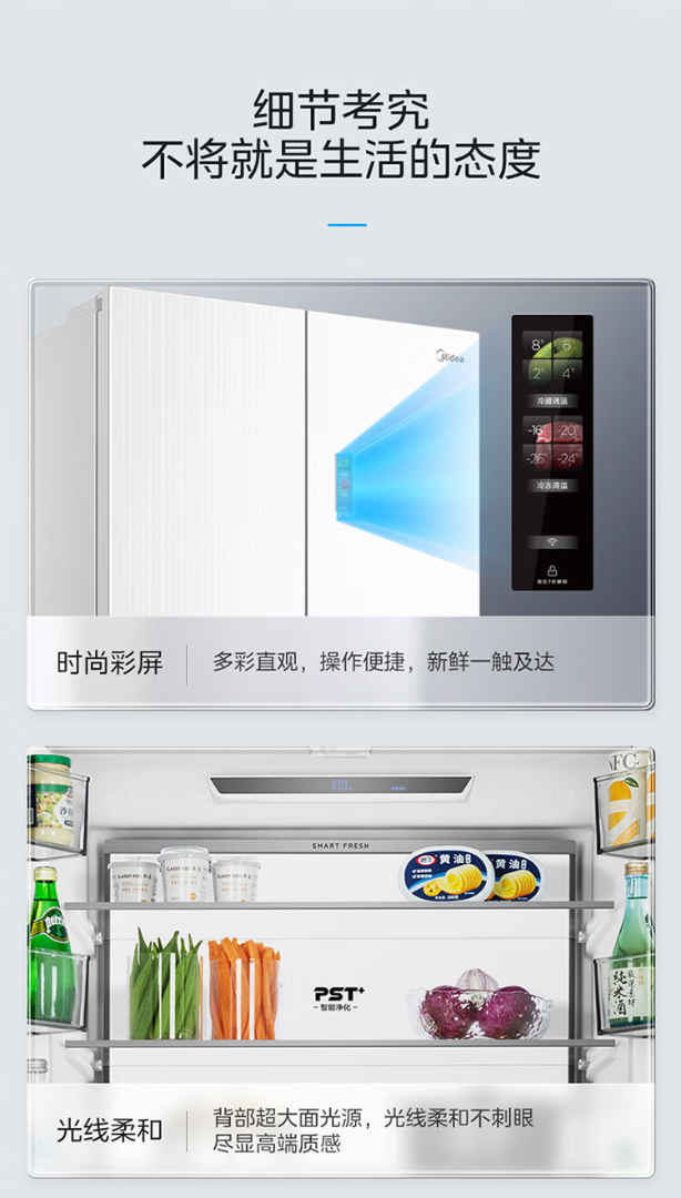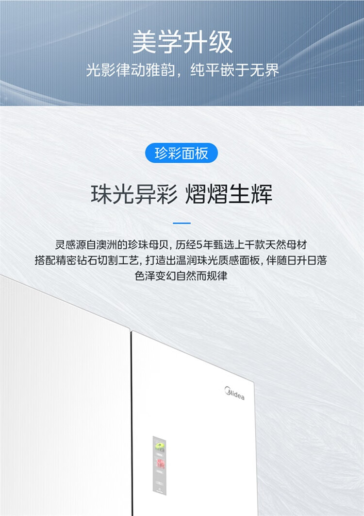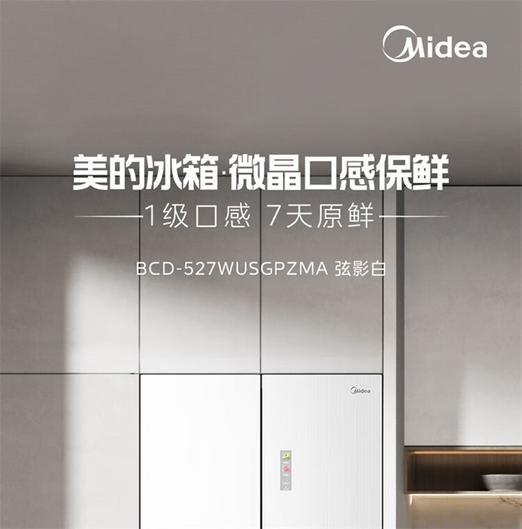 美的(Midea)微晶系列527十字门冰箱脉冲净化除菌嵌入大容量一级能效风冷无霜弦影白BCD-527WUSGPZMA