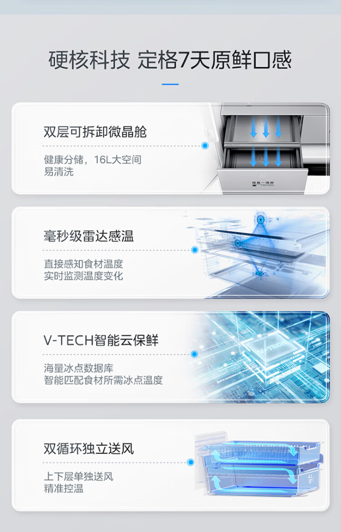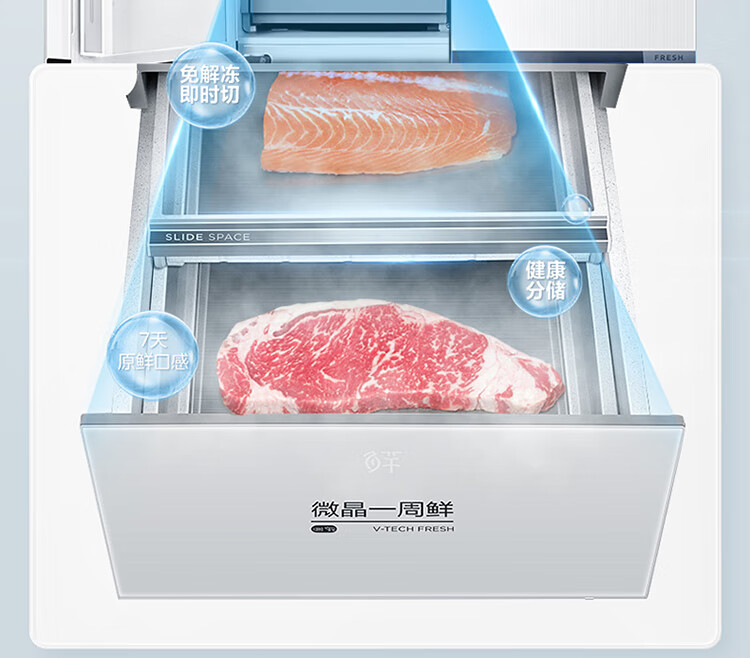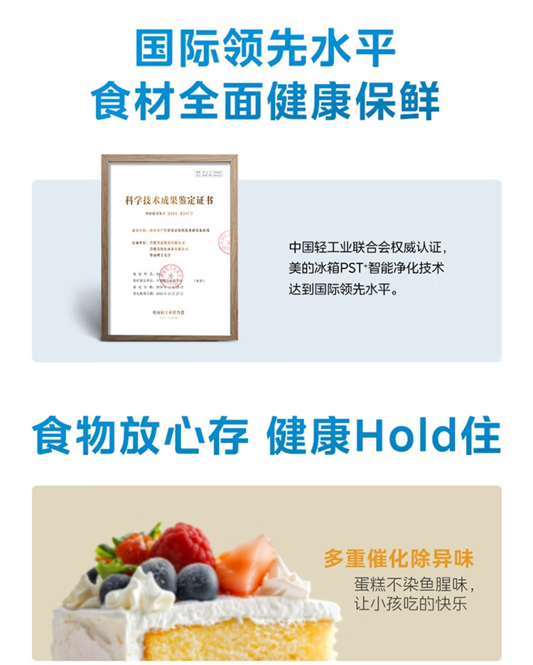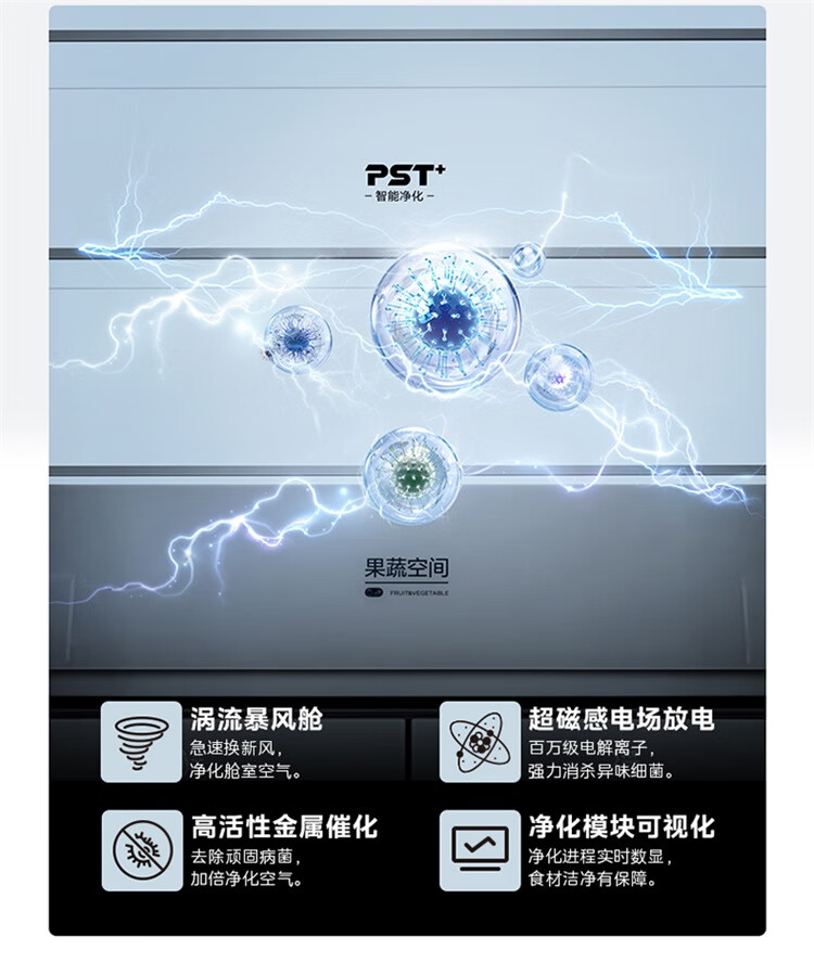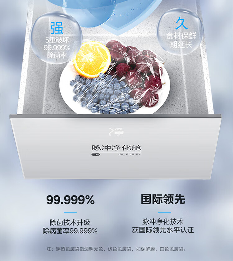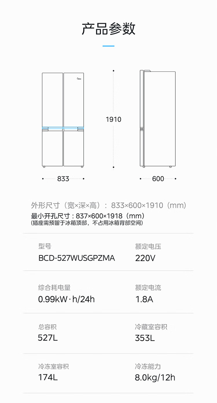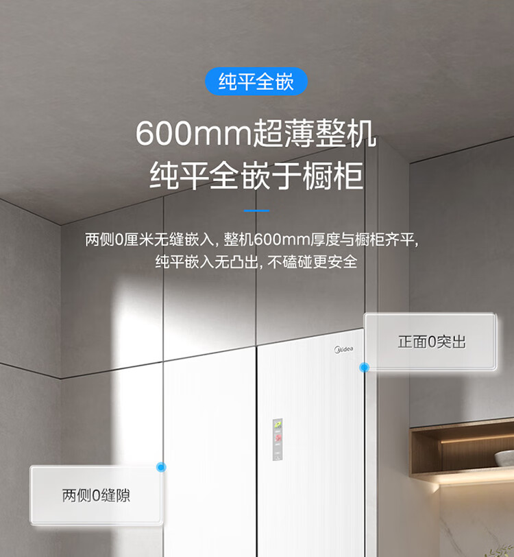 美的(Midea)微晶系列527十字门冰箱脉冲净化除菌嵌入大容量一级能效风冷无霜弦影白BCD-527WUSGPZMA