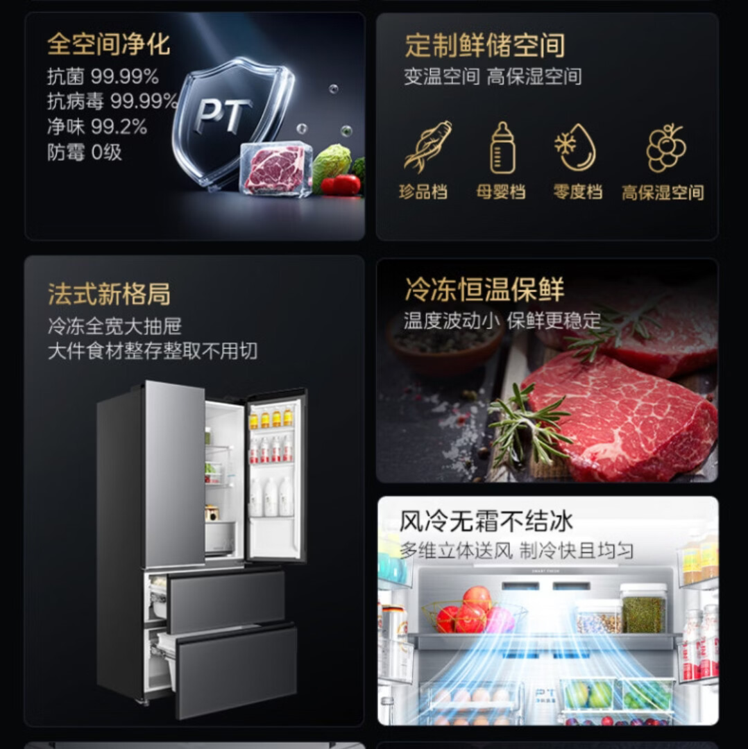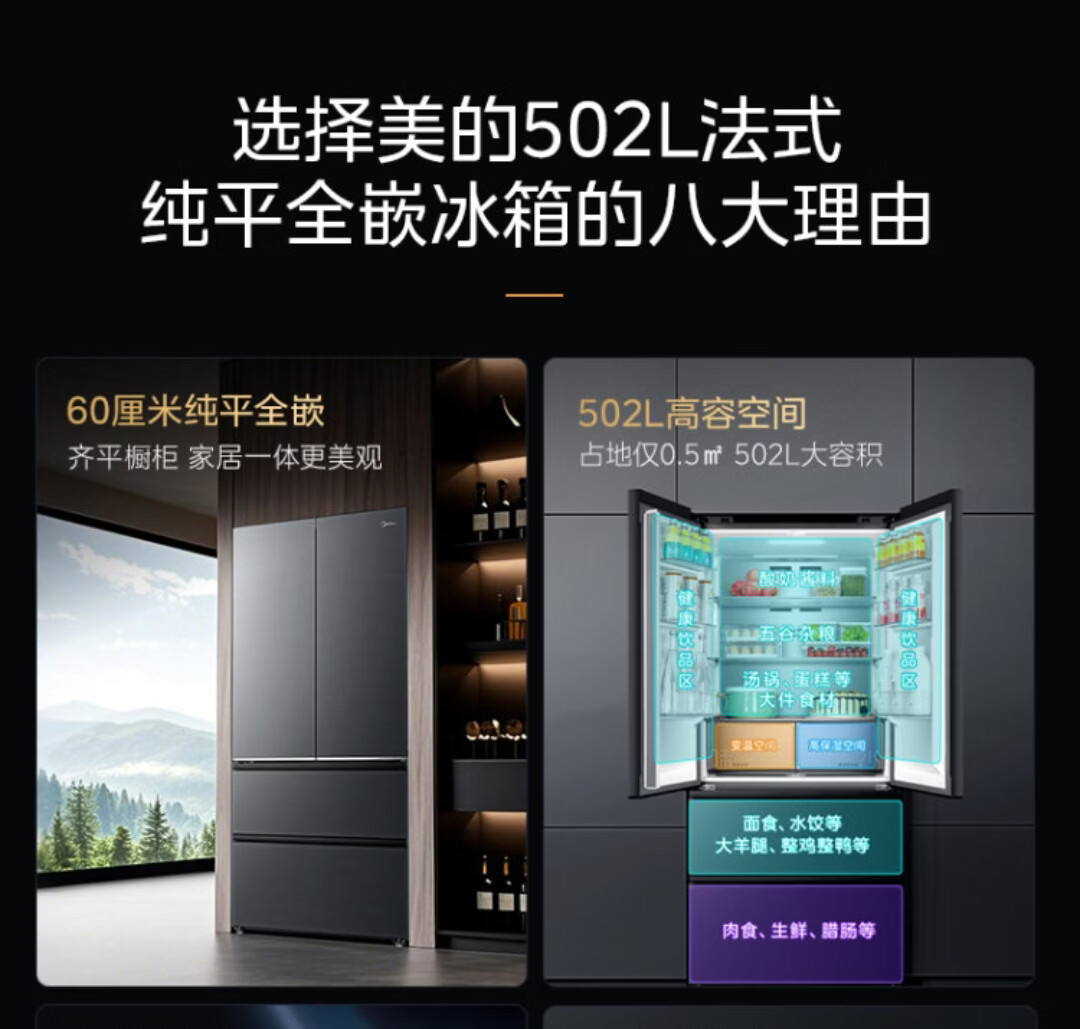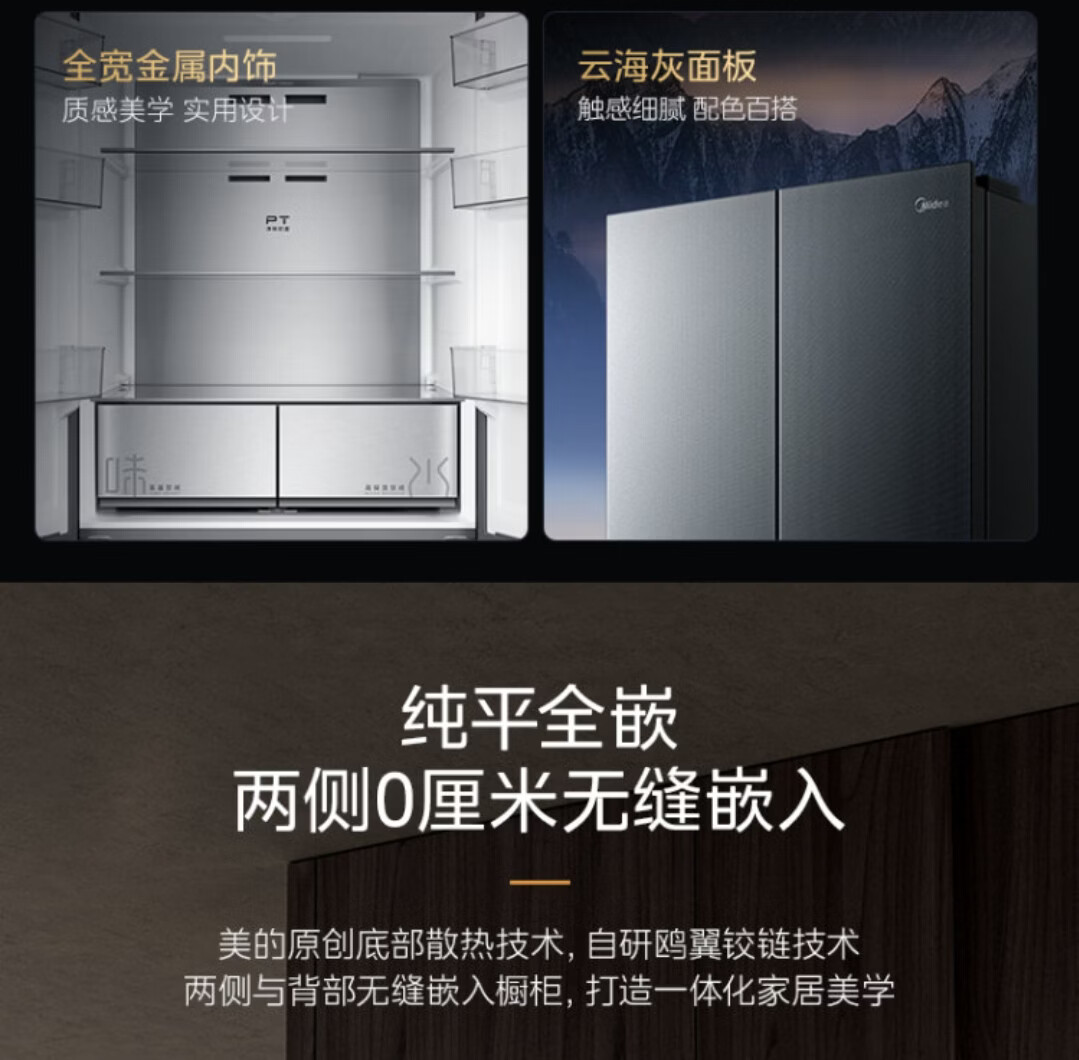 美的美的502升法式多门四开门风冷无霜一级能效双变频 急速净味智能家用电冰箱 BCD-502WUFGPM云海灰