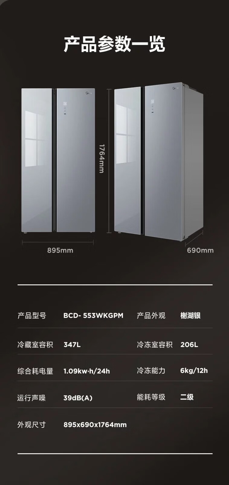 美的(Midea)553升对开门双开门超薄双变频风冷无霜大容量节能省电家用电冰箱 【553升线下款】BCD-553WKGPM