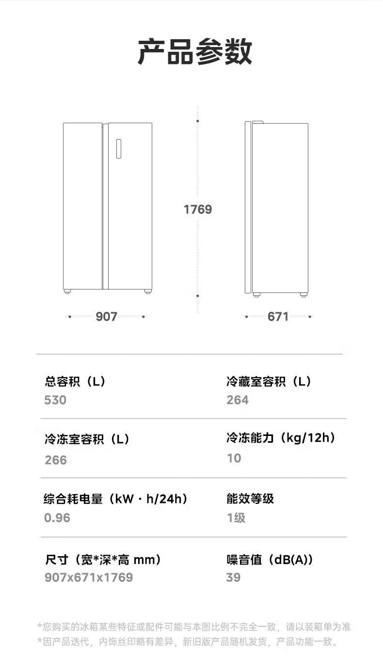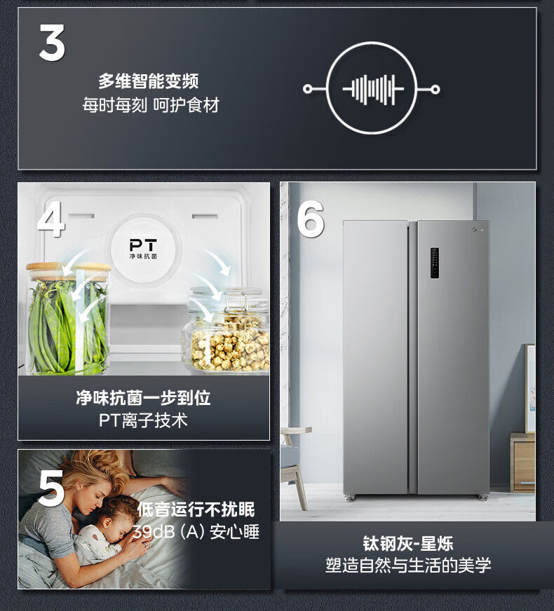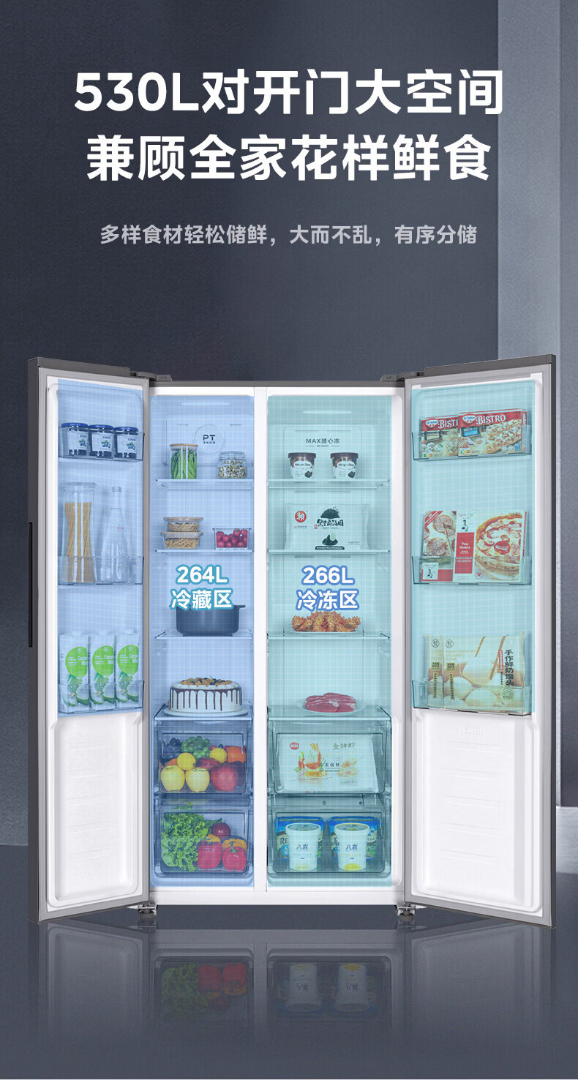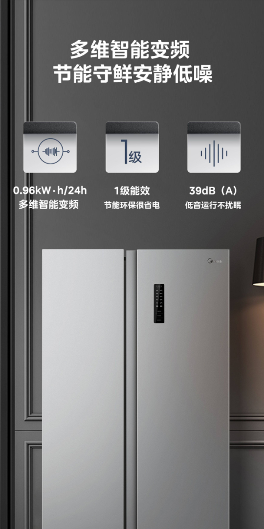 美的美的530升冰箱风冷无霜大冷冻一级对开门变频家用 BCD-530WKPM(Q)