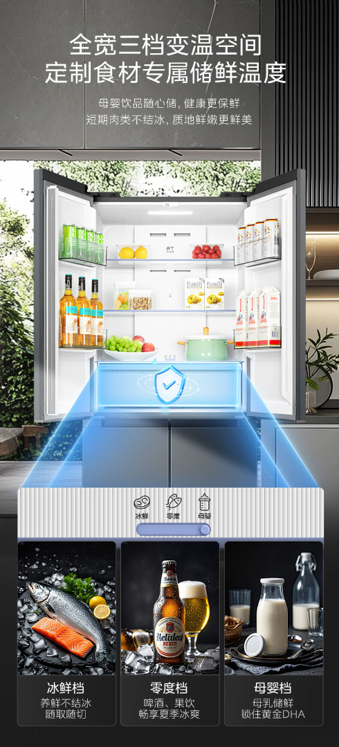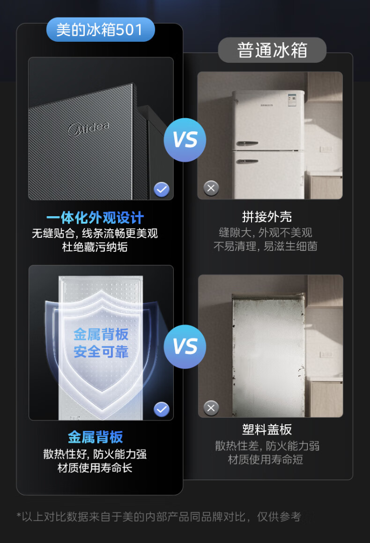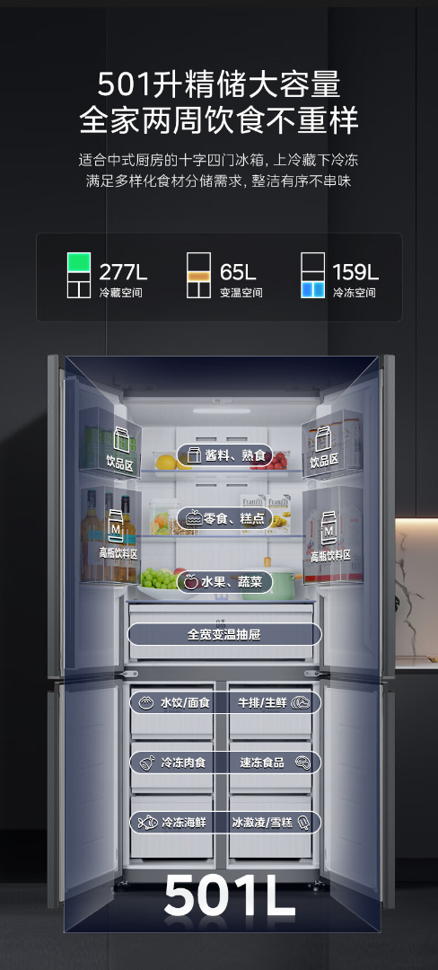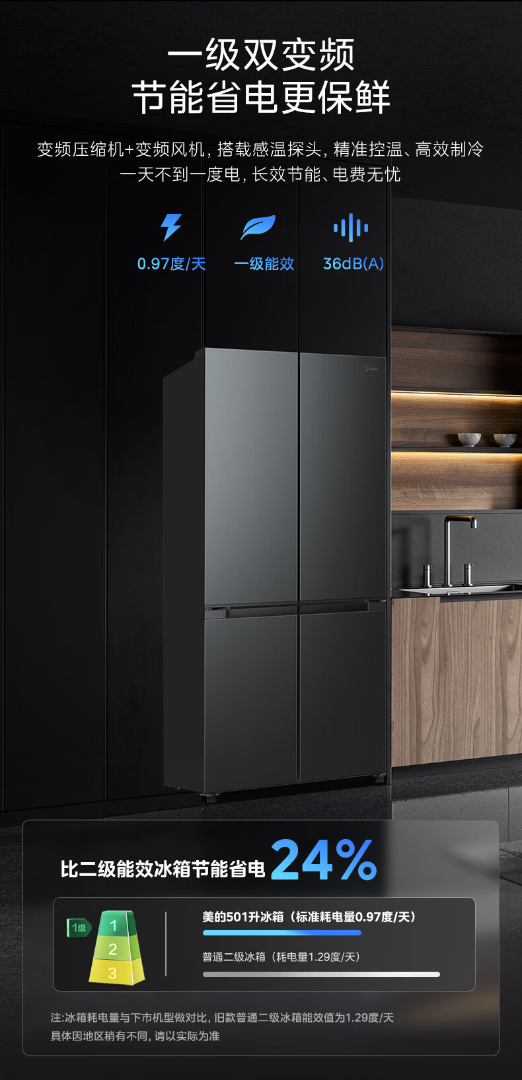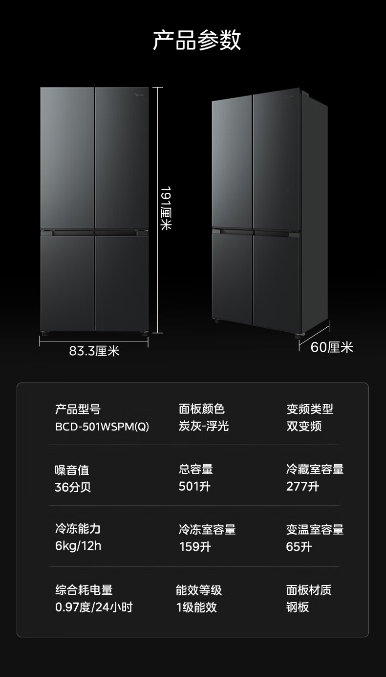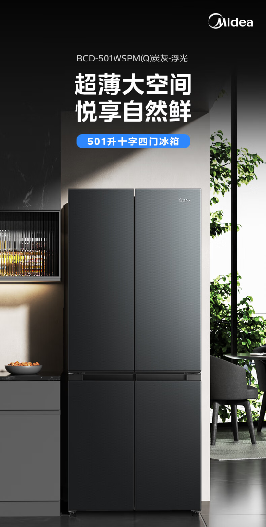 美的(Midea)真香系列501L十字门冰箱60厘米超薄大容量一级能效BCD-501WSPM(Q)