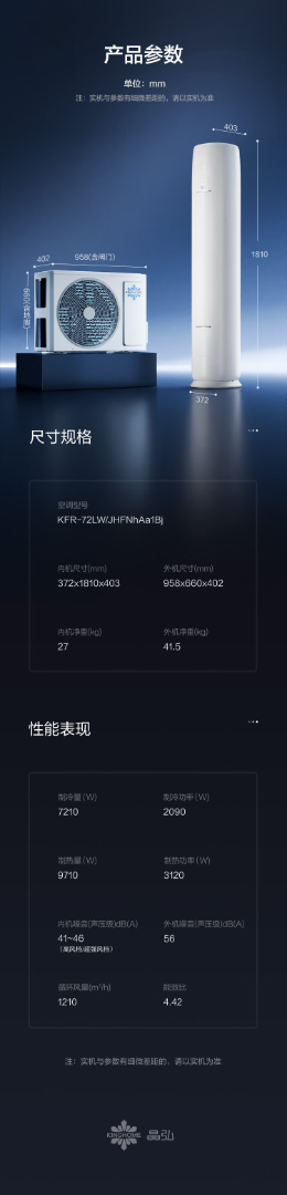 格力出品 晶弘空调 小凉神 3匹新1级能效变频 省电客厅柜机 KFR-72LW/JHFNhAa1Bj【南昌线下专卖店】
