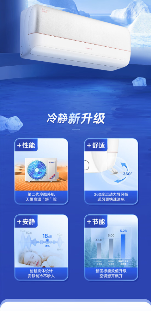 格力空调 冷静王+1.5匹 一级变频 第二代冷酷外机 纯铜管 空调挂机 KFR-35GW/(35562)FNhAa-B1(WIFI)【南昌线下专卖店】