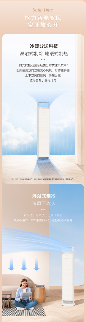 格力空调时光锦3匹一级柜机防直吹 纯铜管 离子杀菌 冷暖自清洁立柜式KFR-72LW/(72506)FNhAa-B1(WIFI)【南昌线下专卖店】