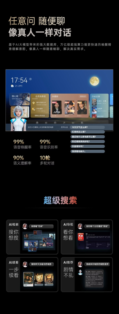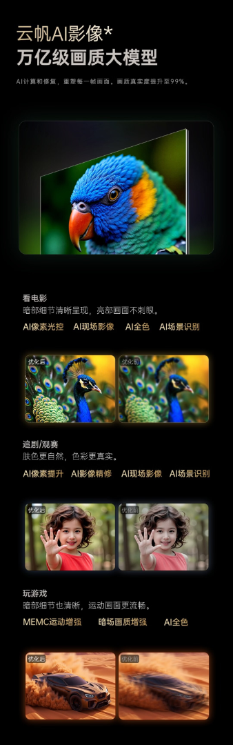 长虹AI TV追光系列 85Q10Air 黑晶广角无影屏 氛围大师 AI光翼壁画电视机