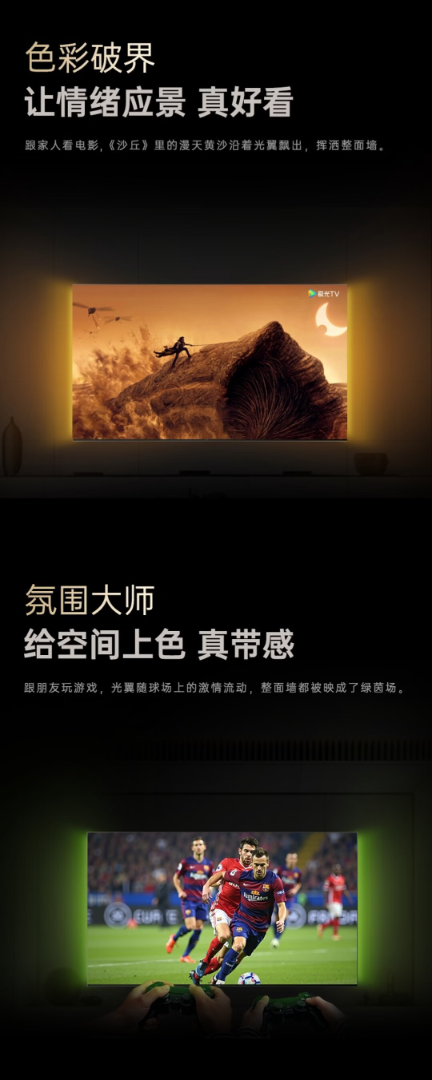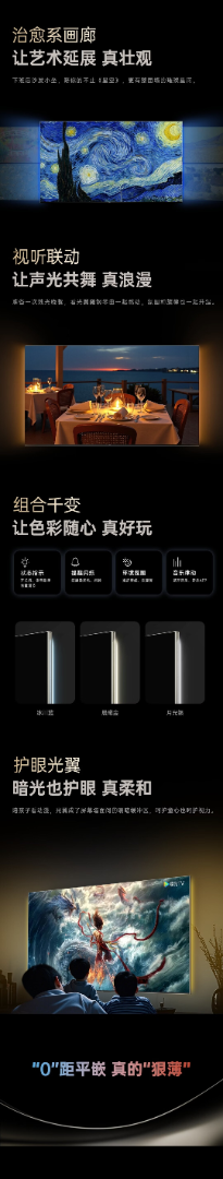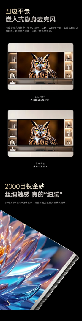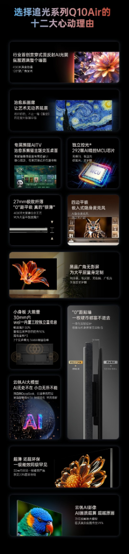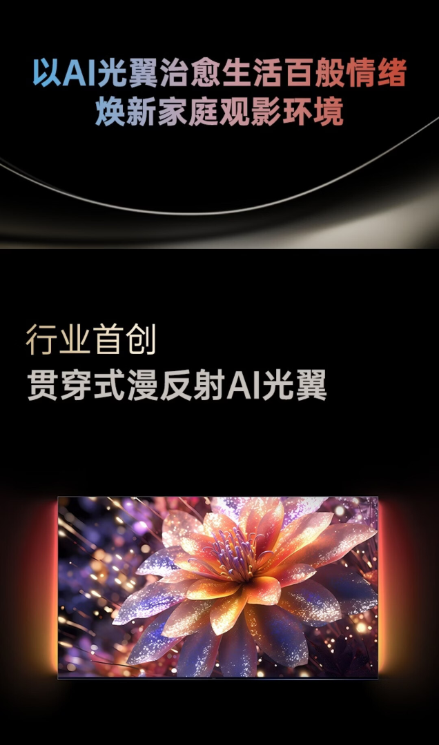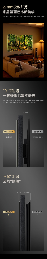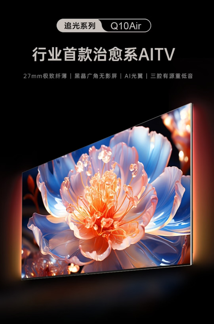 长虹AI TV 追光系列75Q10Air 黑晶广角无影屏 氛围大师 AI光翼壁画电视