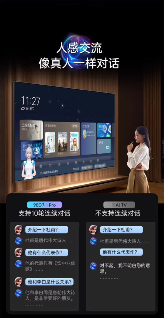 长虹新品电视98D7H Pro官方旗舰正品98英寸客厅卧室家用电视机