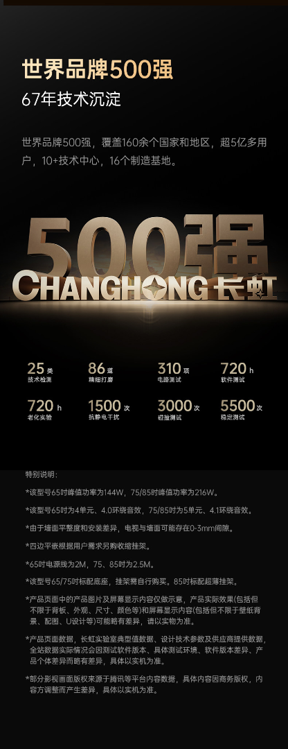 长虹一级能效 480Hz超音画AI电视 75DP860H