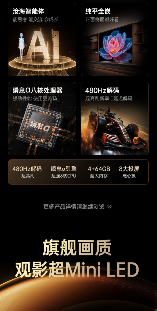 长虹一级能效 480Hz超音画AI电视 65DP860H