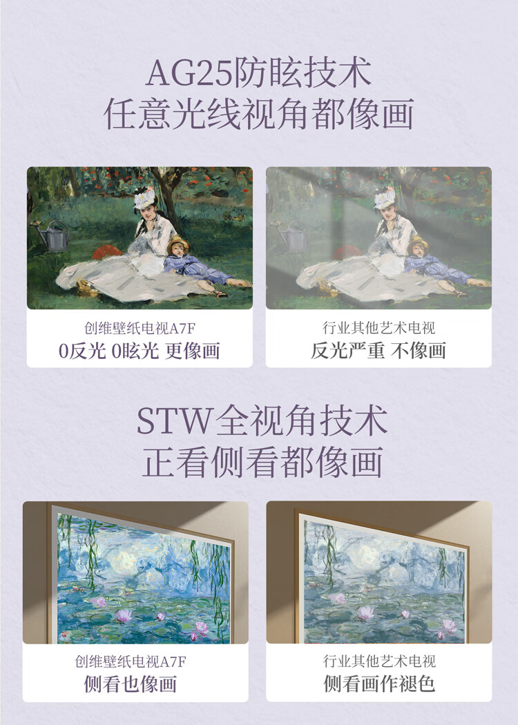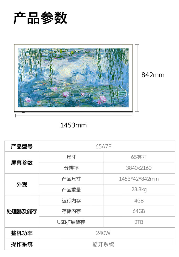 创维壁纸电视65A7F 65吋超薄壁画艺术mini led 智能平板4K液晶电视机 A7E升级款 65英寸 65英寸