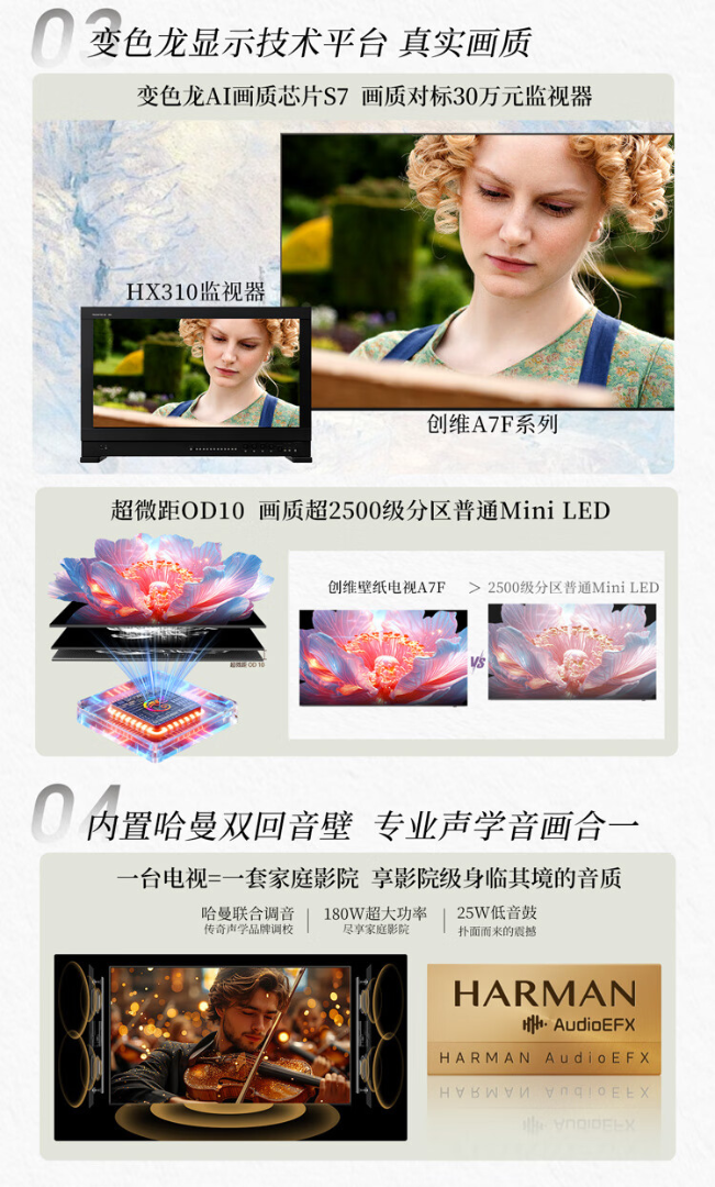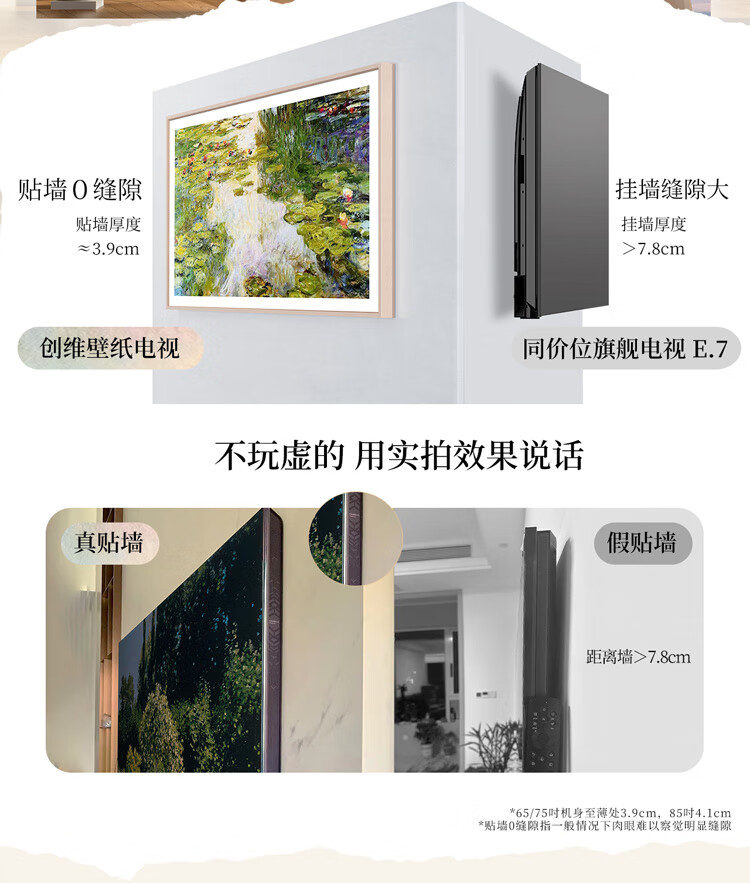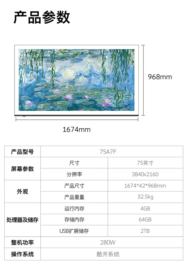 创维壁纸电视75A7F 75英寸电视机超薄壁画艺术Mini LED智能平板家电液晶彩电电视机75吋 75英寸 【新品】官方标配 一级能效