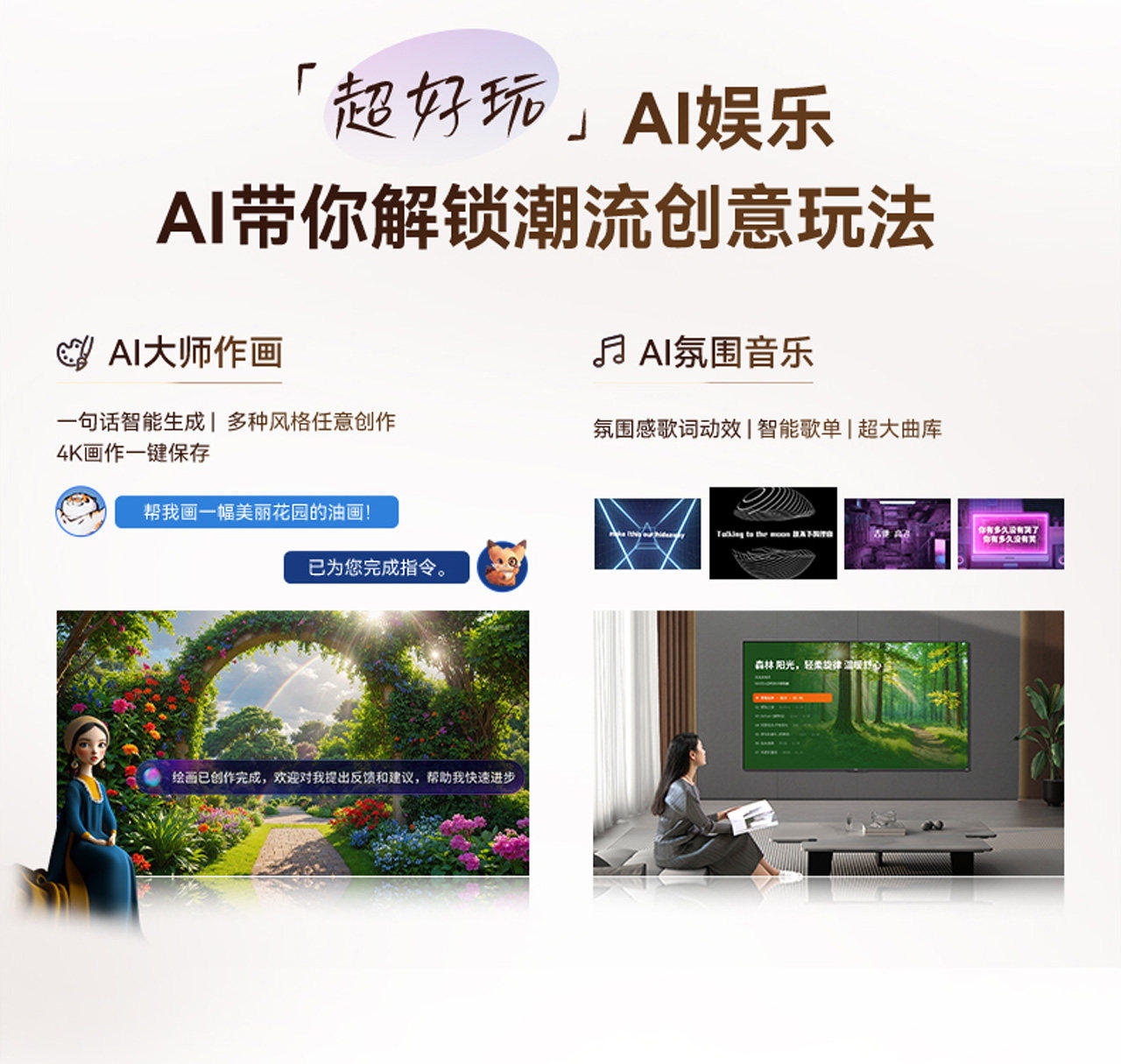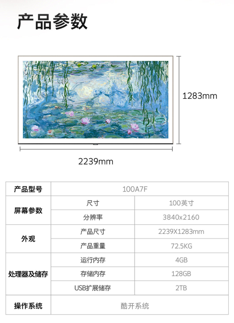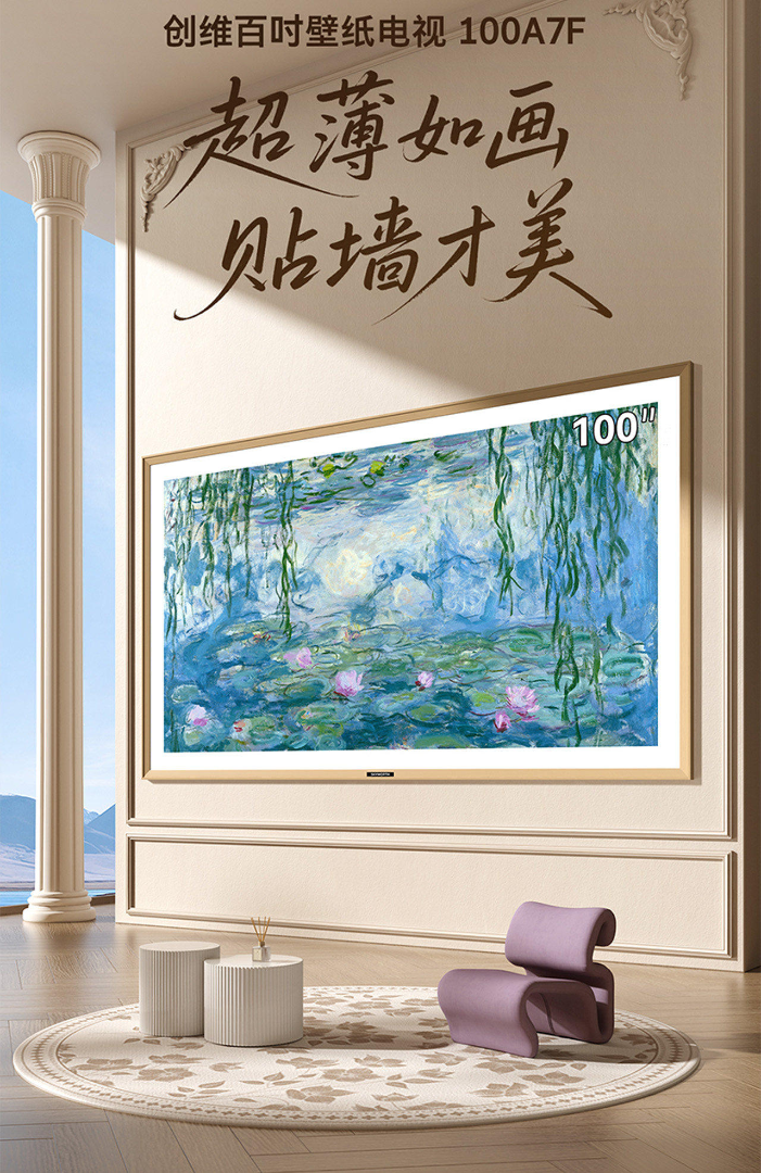 创维壁纸100A7F 100英寸电视超薄无缝贴墙壁画Miniled艺术电视